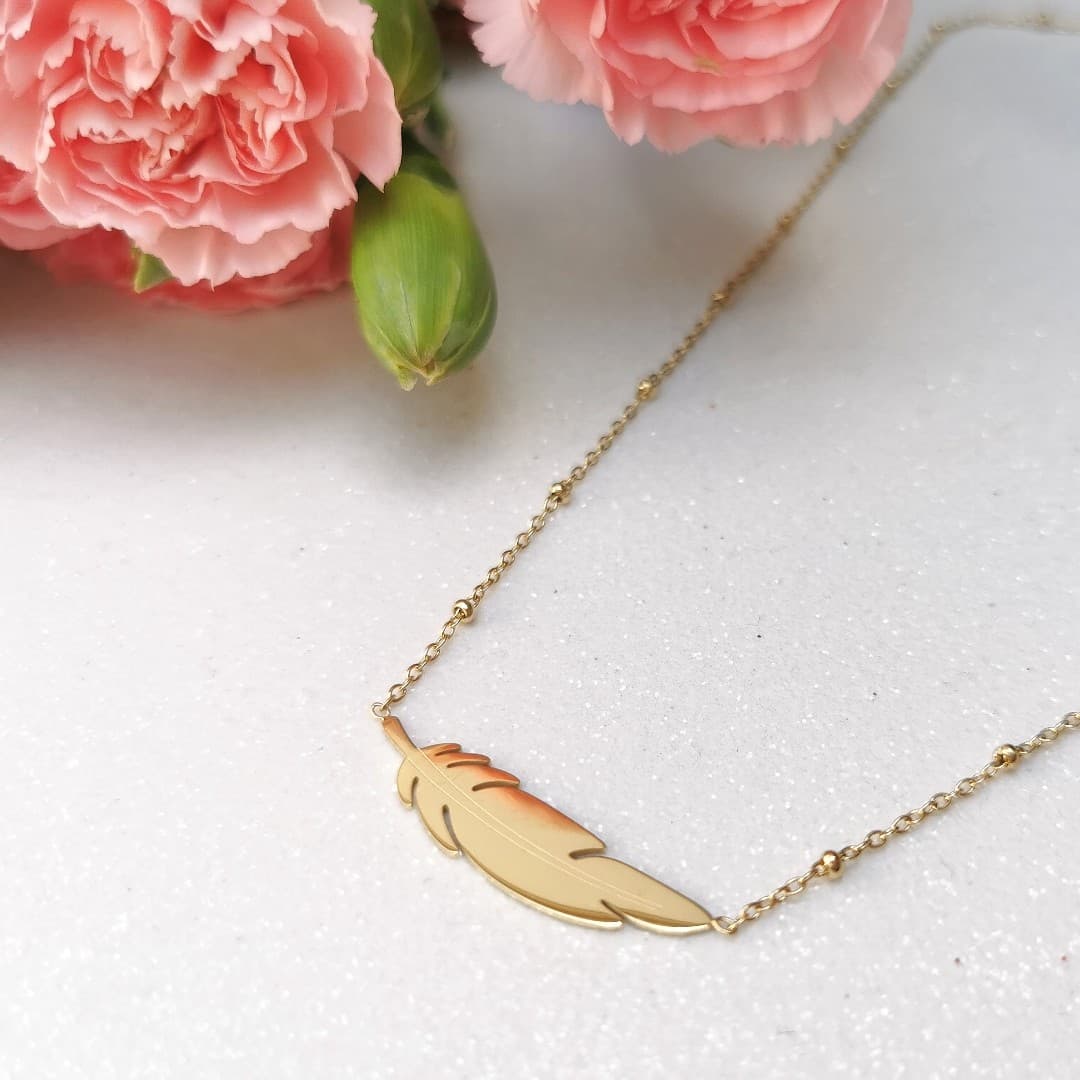 Prześliczny naszyjnik/celebrytka z najnowszej kolekcji SOHO Biżuteria, wykonany z wysokiej jakości stali chirurgicznej 316l, w kolorze złota. Celebrytka z motywem delikatnego piórka, na łańcuszku ozdobionym złotymi kuleczkami. Prezentuje się naprawdę cudownie. Sprawdzi się jako prezent dla bliskiej osoby.