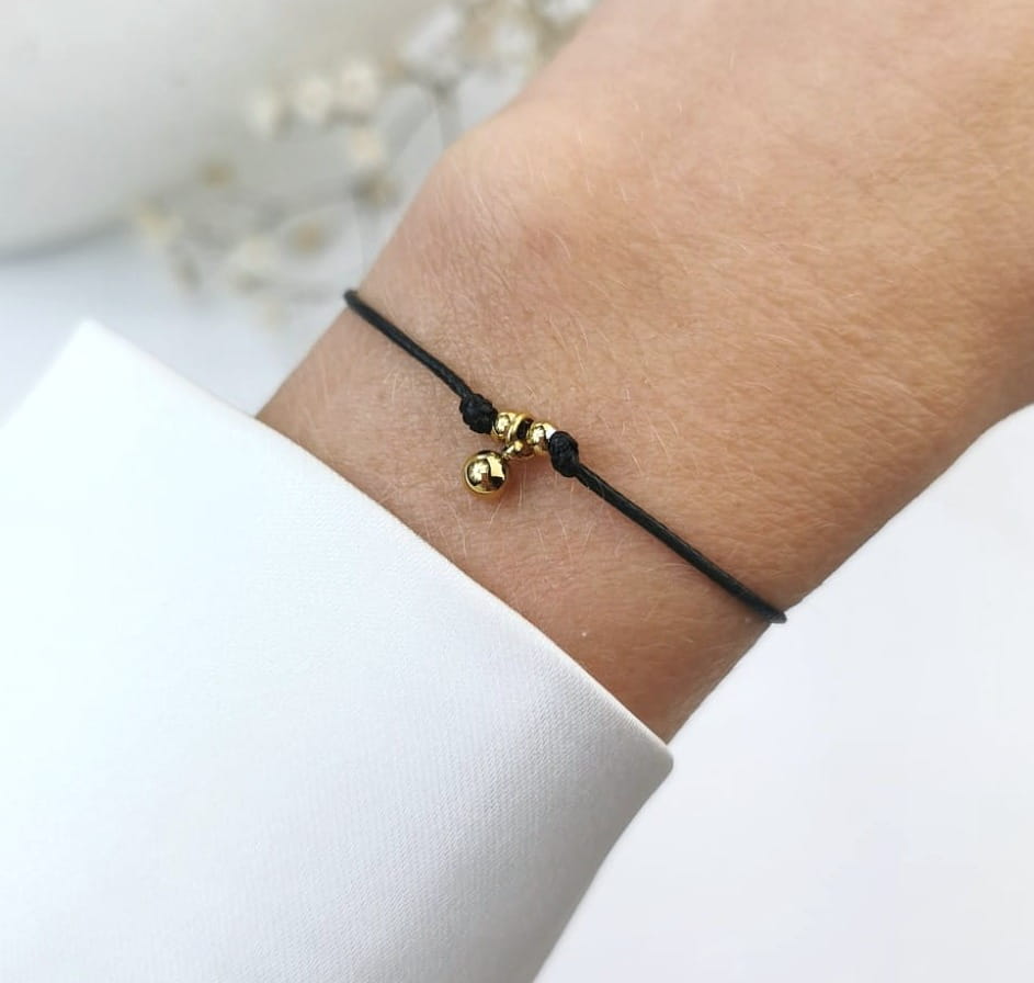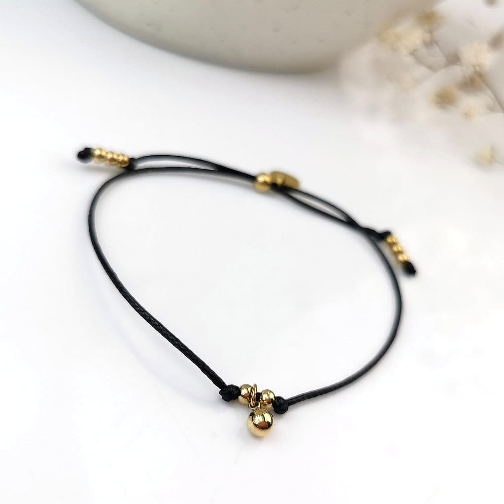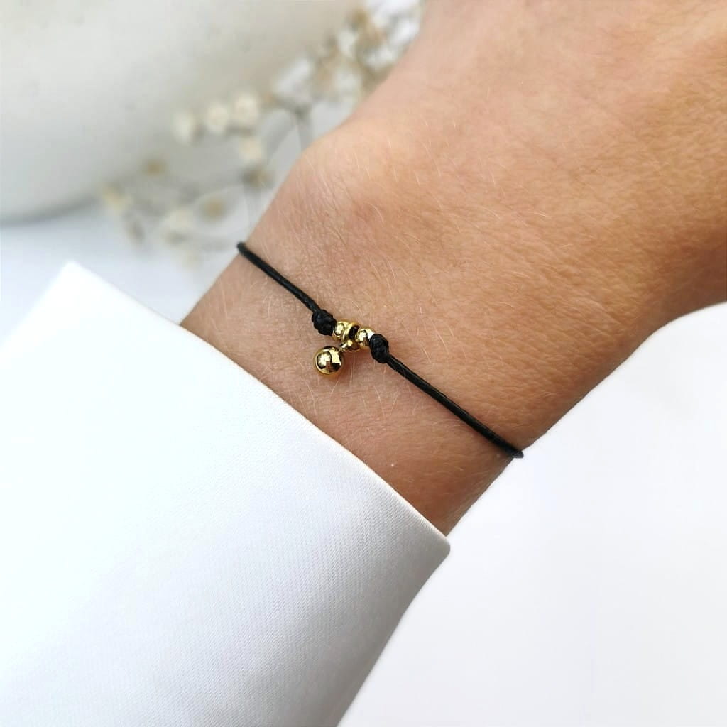 Cudowna bransoletka z najnowszej kolekcji SOHO Biżuteria, wykonana z wysokiej jakości stali chirurgicznej 316l. Bransoletka na czarnym sznurku jubilerskim, ze złotymi kulkami. Prezentuje się naprawdę rewelacyjnie. Idealna na prezent dla bliskiej osoby. Zachwyca jakością i starannością wykonania. Jakość Premium.