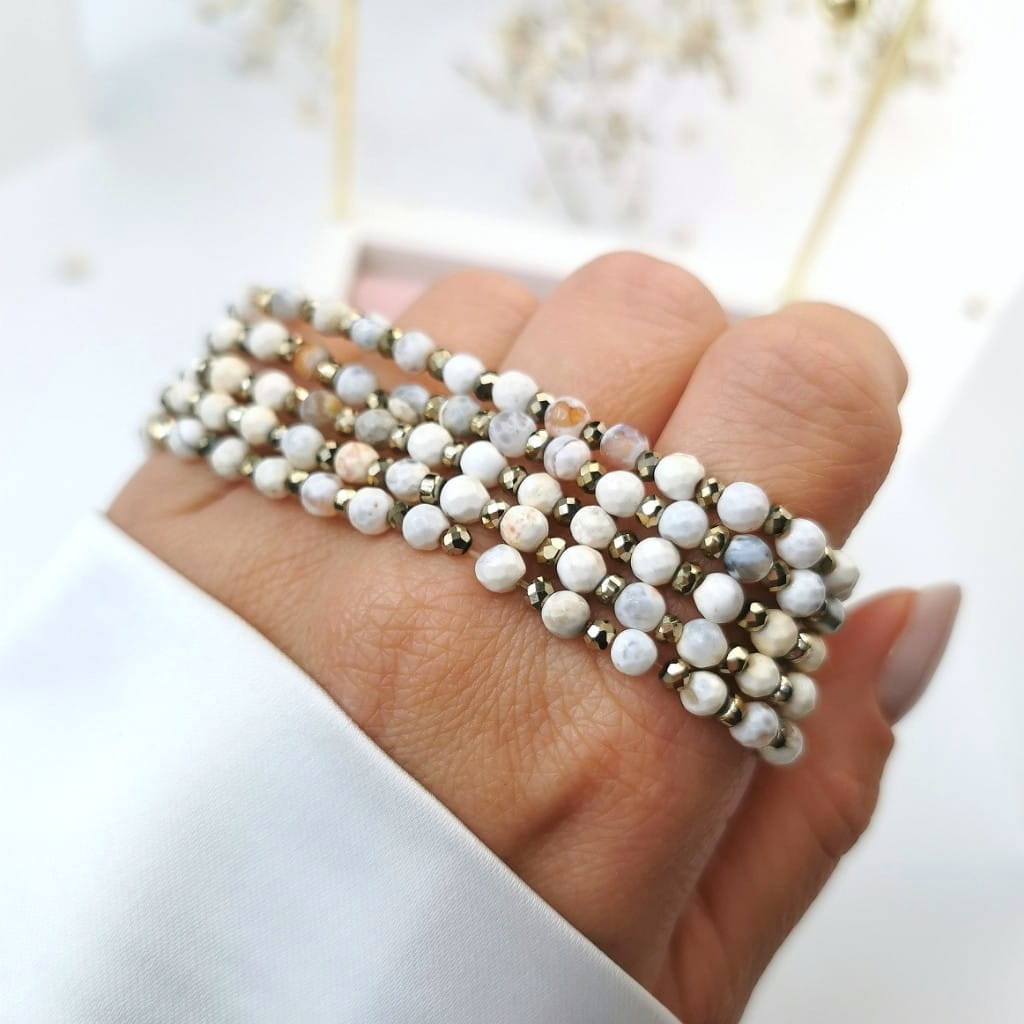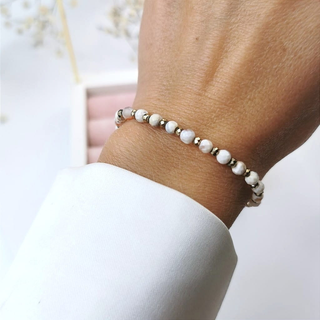 Bransoletka z agatami hematyty beżowa