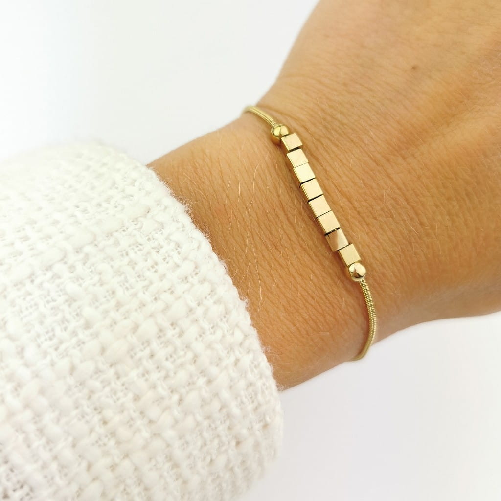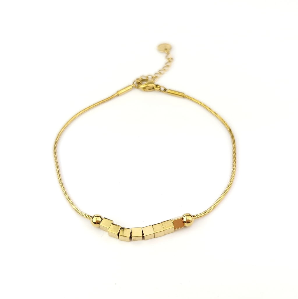 Bransoletka wykonana z wysokiej jakości stali chirurgicznej 316l, w kolorze złota. Delikatny łańcuszek ze złotymi kostkami świetnie prezentuje się na żywo.
