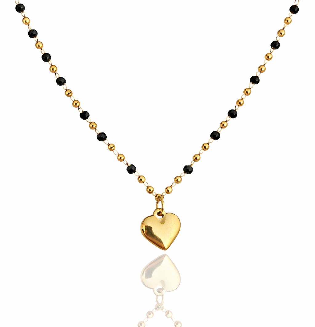 Naszyjnik serduszko czarne koraliki złote kulki kolor złoty ze STALI CHIRURGICZNEJ