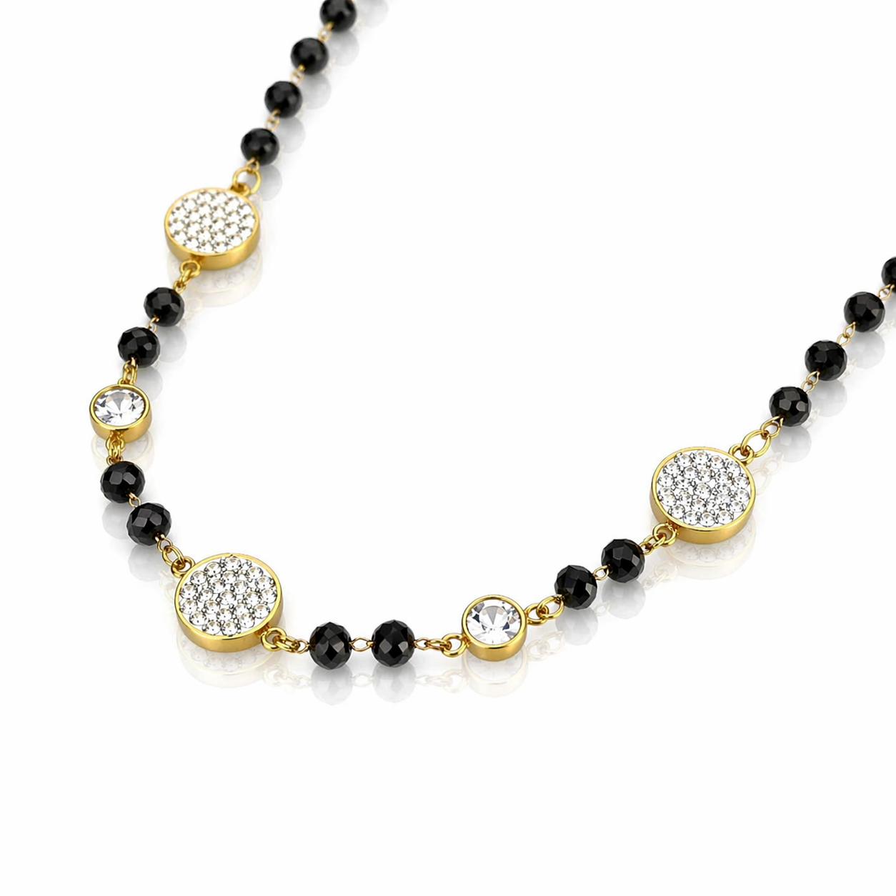 Naszyjnik ze STALI CHIRURGICZNEJ czarne koraliki kryształy kolor złoty