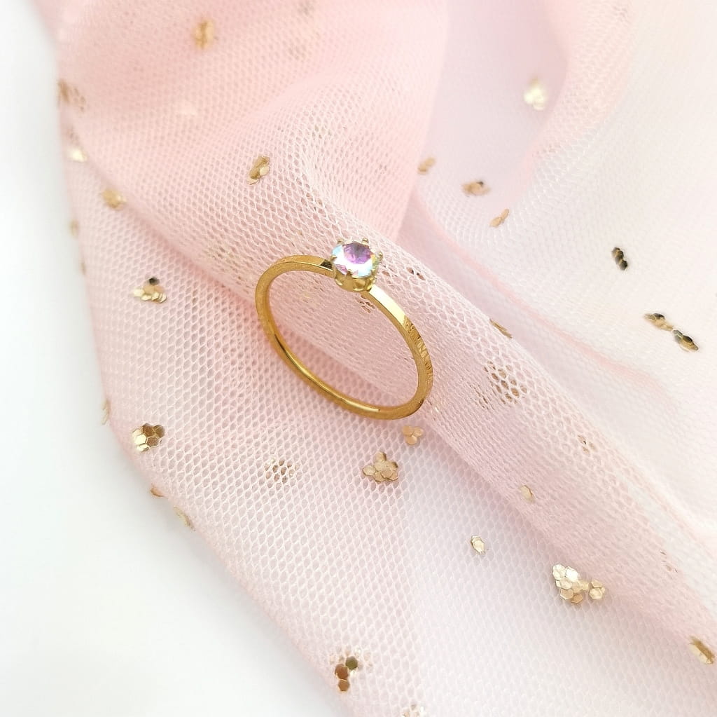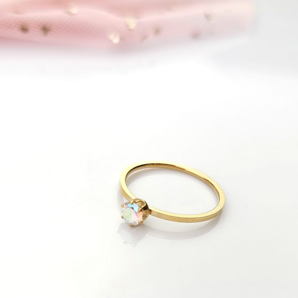 Pierścionek STAL CHIRURGICZNA Opalizujący kryształ kolor złoty Blueberry