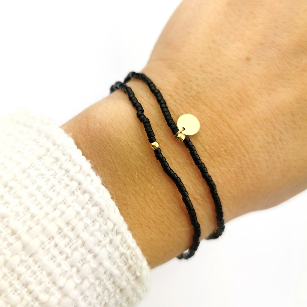 Zestaw dwóch bransoletek na gumce jubilerskiej z czarnymi koralikami. Idealnie sprawdzi się do noszenia na co dzień. Idealna do łączenia w zestawy.