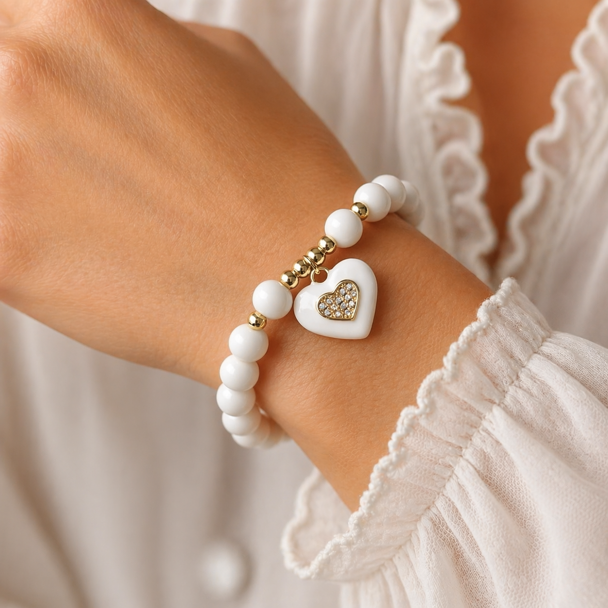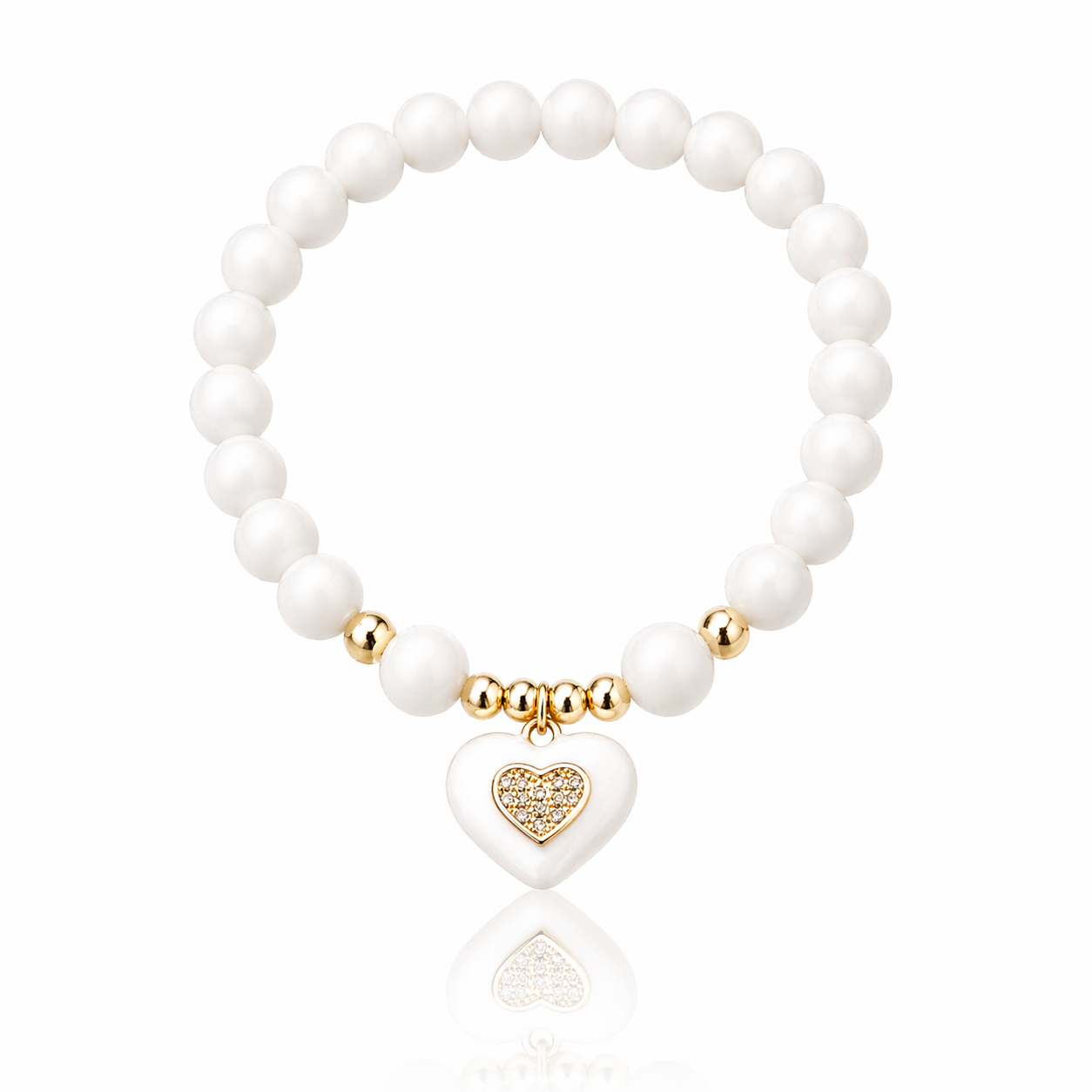 Bransolerka z białych kamieni z zawieszką serce