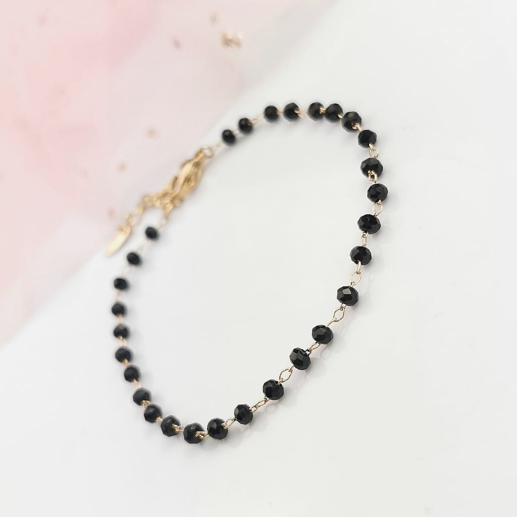Klasyczna bransoletka z najnowszej kolekcji SOHO Biżuteria, wykonana z wysokiej jakości miedzi, pozłacane 18k złotem. Klasyczny model, z czarnymi koralikami sprawia, że wpisze się do każdej stylizacji. Model, który świetnie prezentuje się noszony solo, jak i w zestawie. Must have!