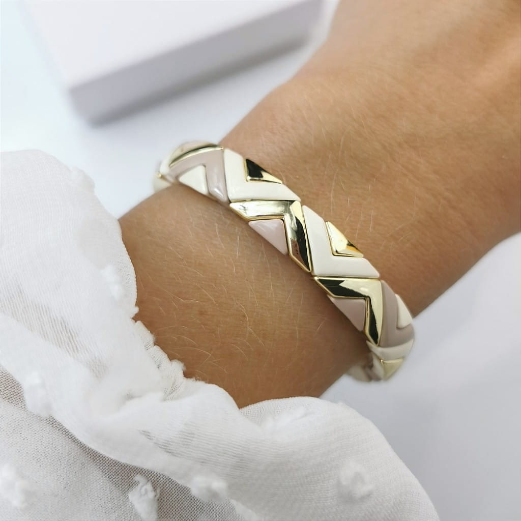 Bransoletka POZŁACANA ze STALI SZLACHETNEJ z beżowymi złotymi elementami