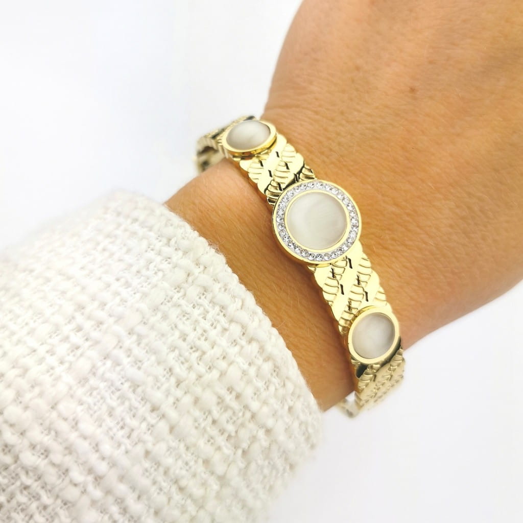 Bransoletka STAL CHIRURGICZNA masa perłowa sztywna bangle kryształki