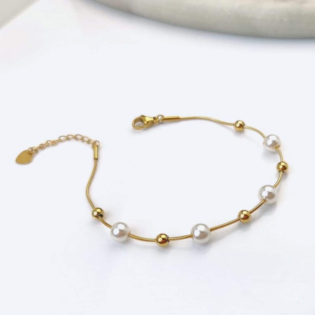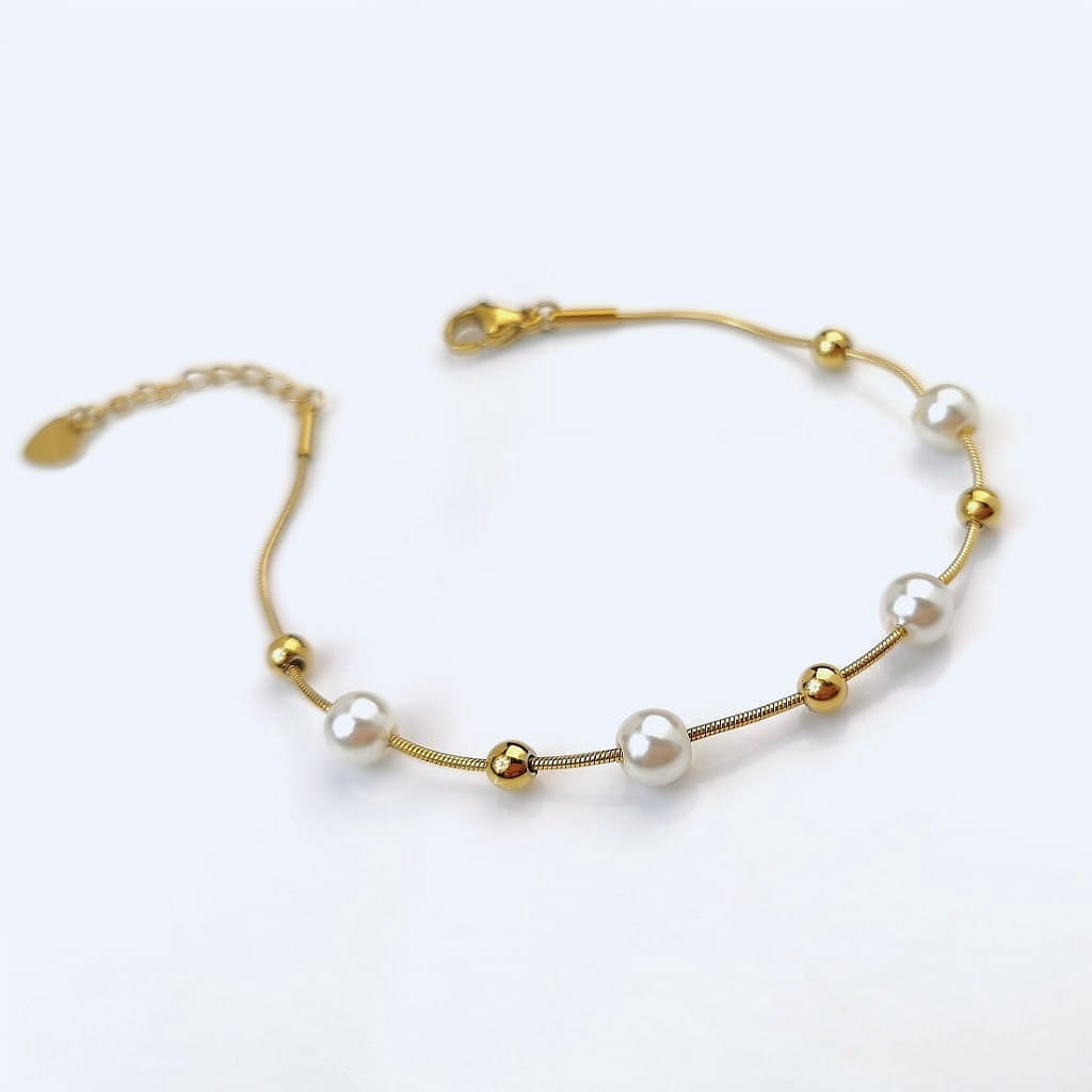 Bransoletka STAL CHIRURGICZNA perły kulki złote