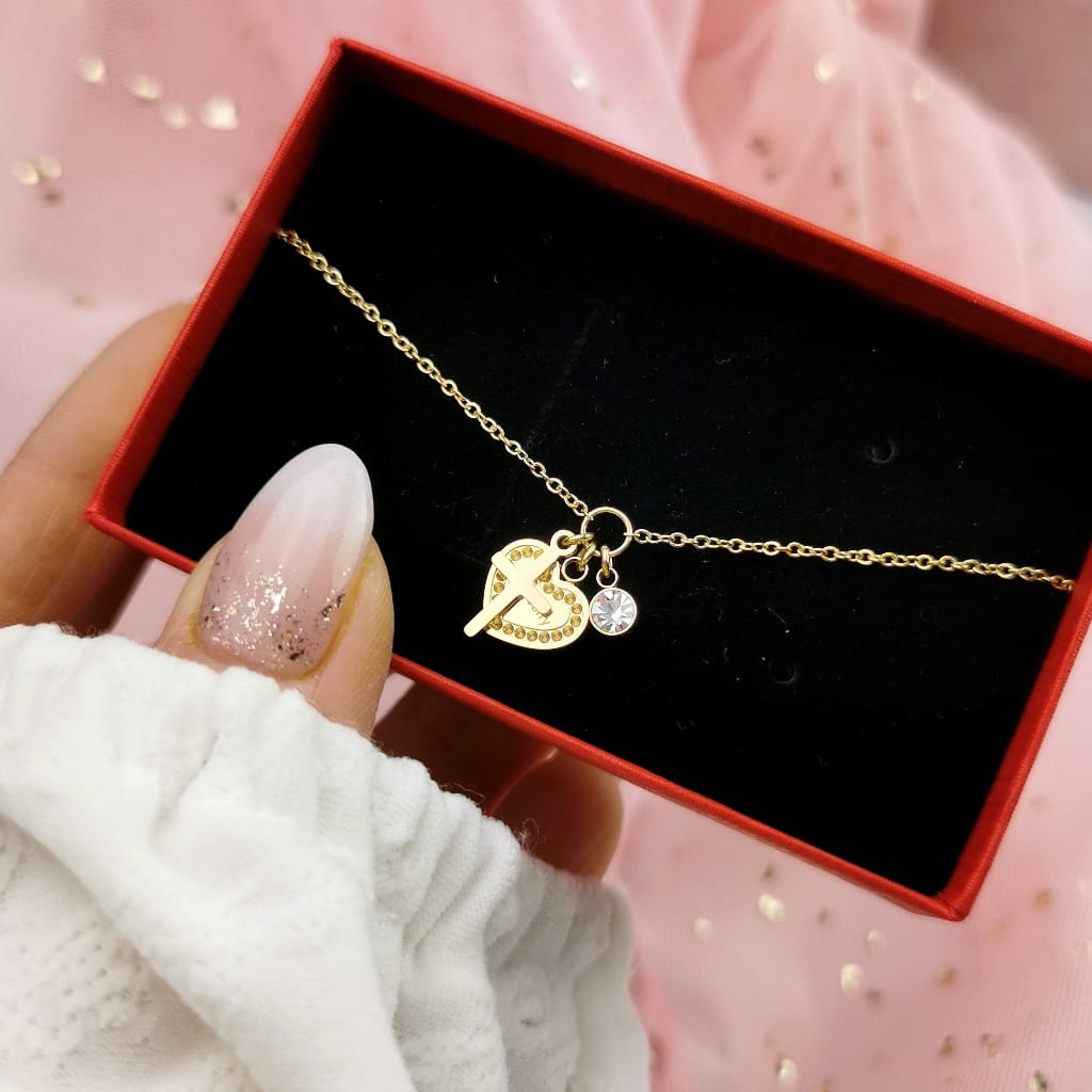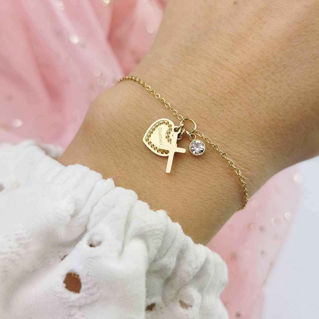 Bransoletka STAL CHIRURGICZNA serce krzyżyk kolor złoty Blueberry Premium