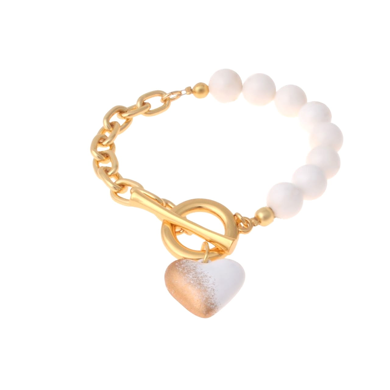 Bransoletka biały onyks PĘKATE SERCE kolor złoty Colibra