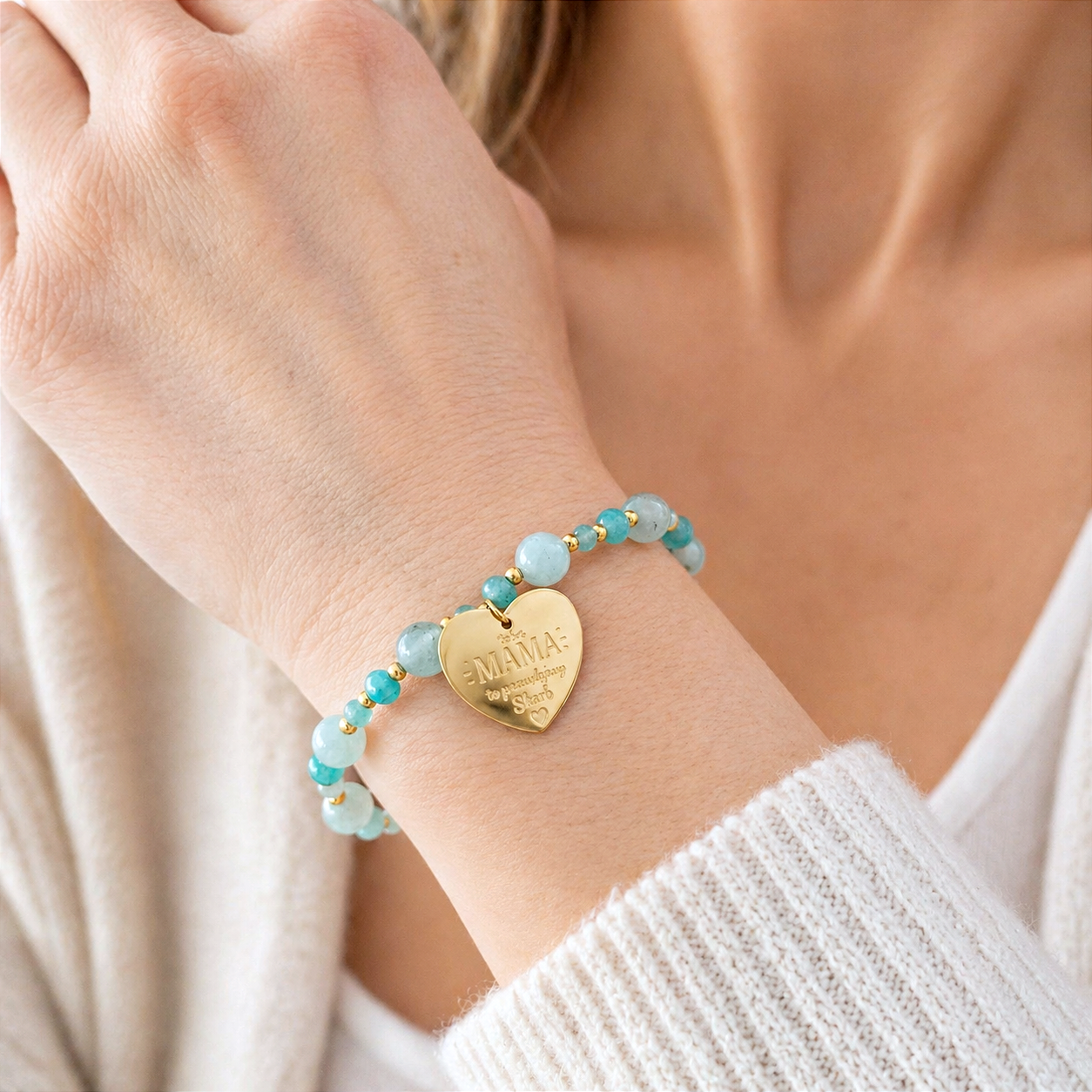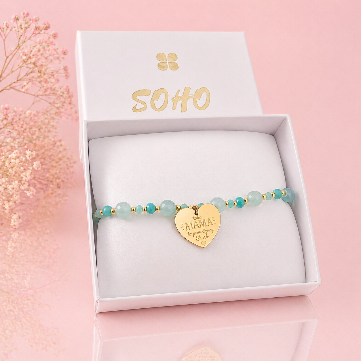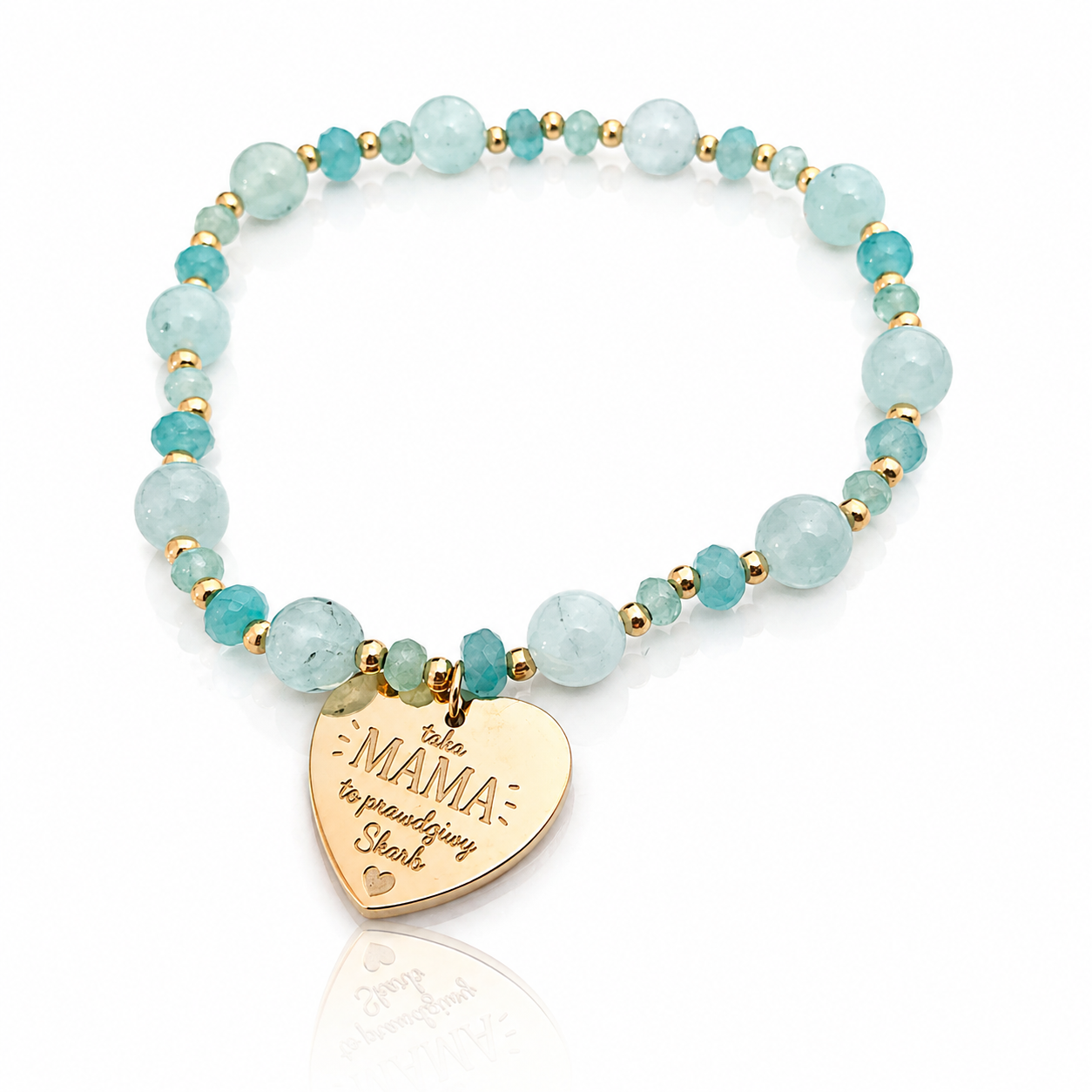 Bransoletka dla Mamy serce amazonity POZŁACANA STAL