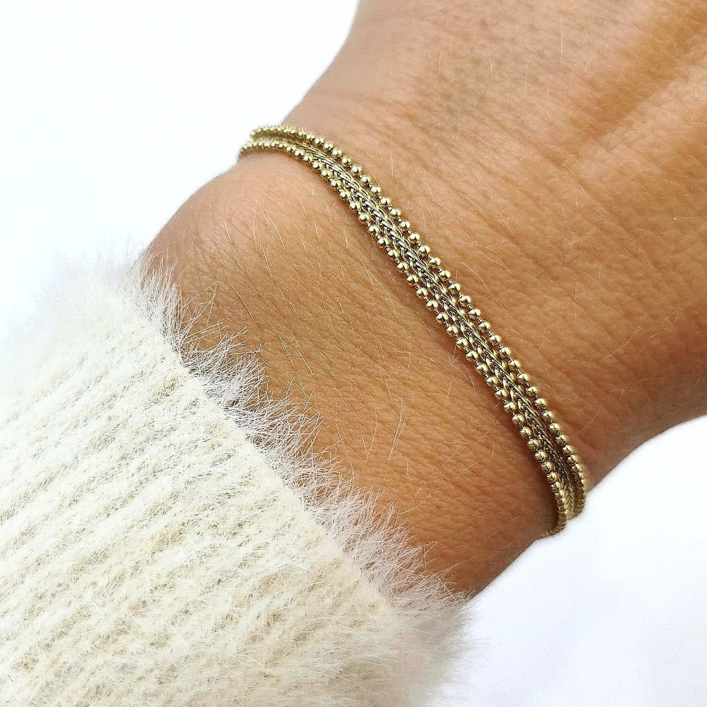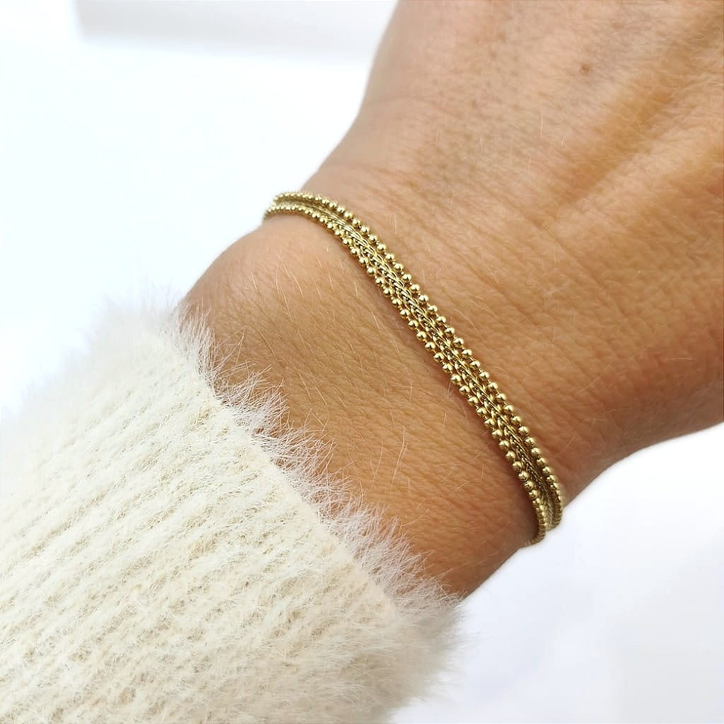 Bransoletka potrójna kuleczki ze STALI CHIRURGICZNEJ złota