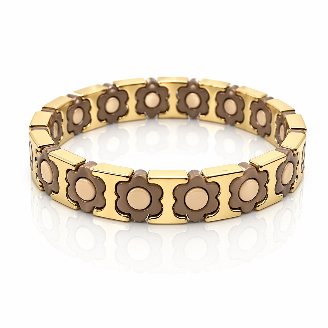 Bransoletka kwiaty beżowa emalia pozłacana elastyczna