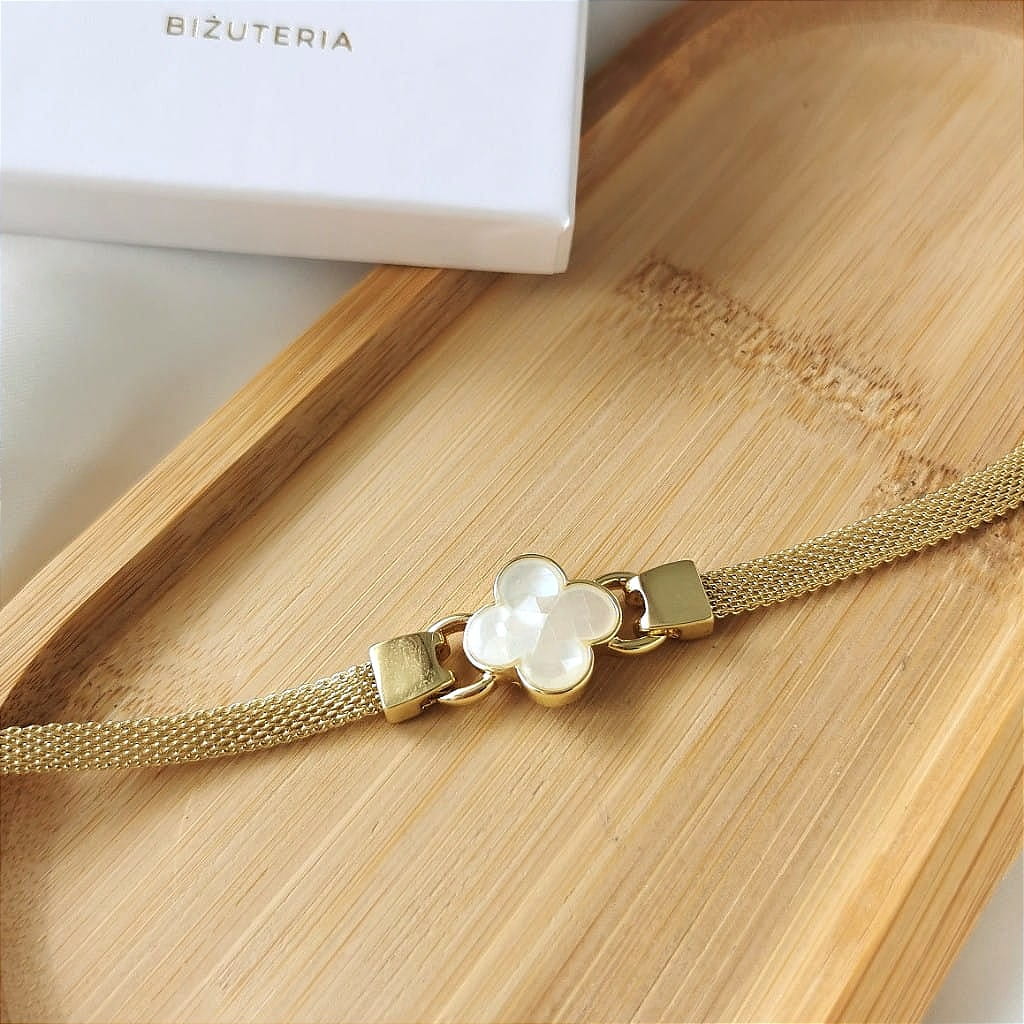 Bransoletka mesh z perłową koniczynką clover STAL SZLCACHETNA