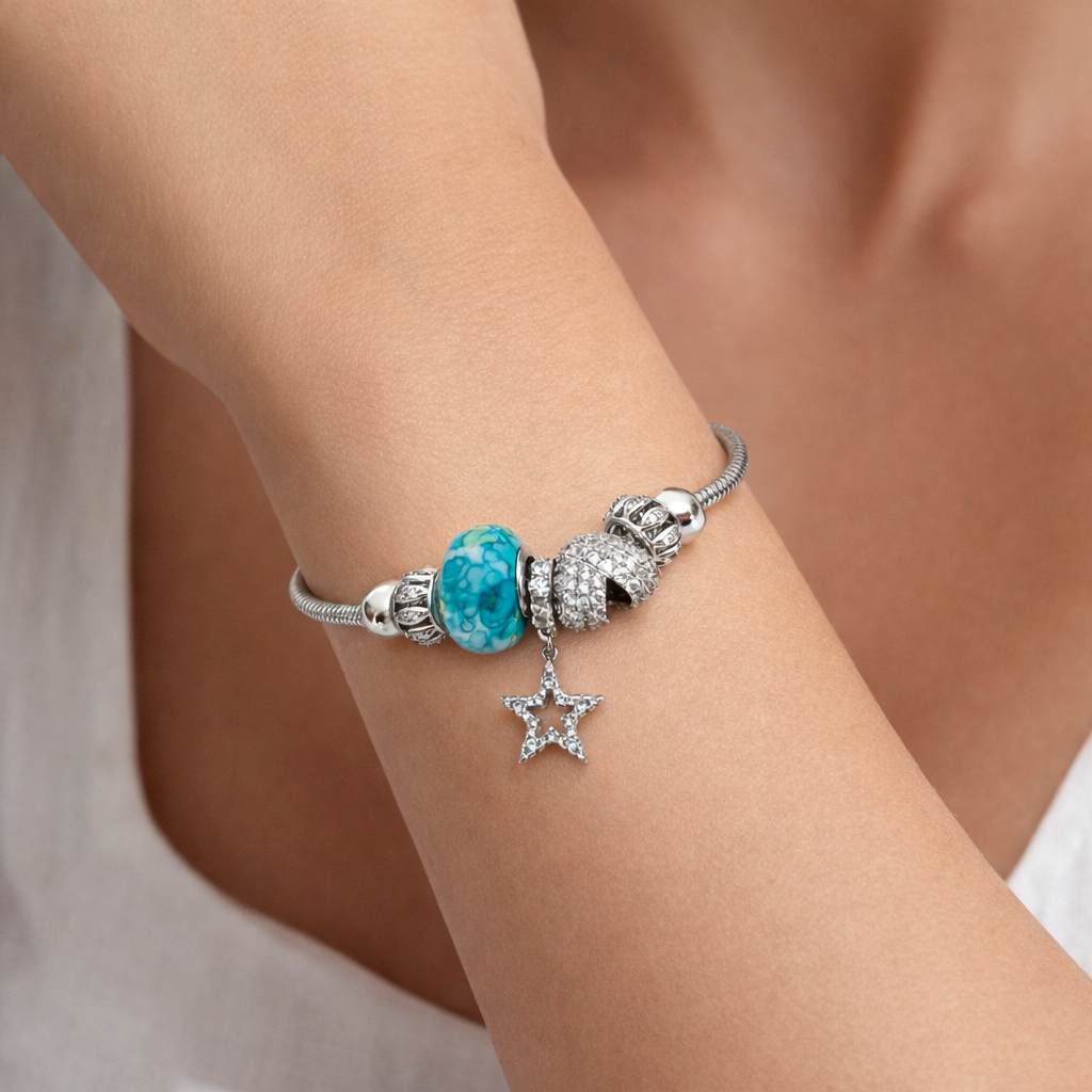 Dodaj swoim stylizacjom blasku z uroczą bransoletką z najnowszej kolekcji SOHO Biżuteria, wykonaną z wysokiej jakości stali szlachetnej, w kolorze srebrnym. Bransoletka przyciąga uwagę i sprawia, że Twoja stylizacja będzie bardzo kobieca i elegancka. Bransoletka modułowa, o wężykowym splocie łańcuszka w kolorze srebra, z cyrkoniowymi zawieszkami typu charms. Prezentuje się obłędnie. Zachwyca jakością i starannością wykonania. Idealna także na prezent dla bliskiej osoby. Spraw sobie odrobinę luksusu i zamów biżuterię, którą pokochały kobiety na całym świecie.