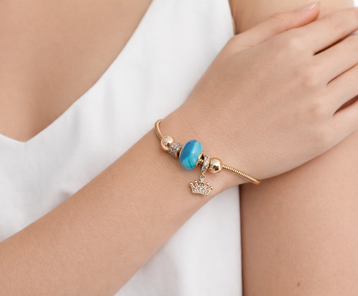Bransoletka modułowa charms złota z cyrkoniami