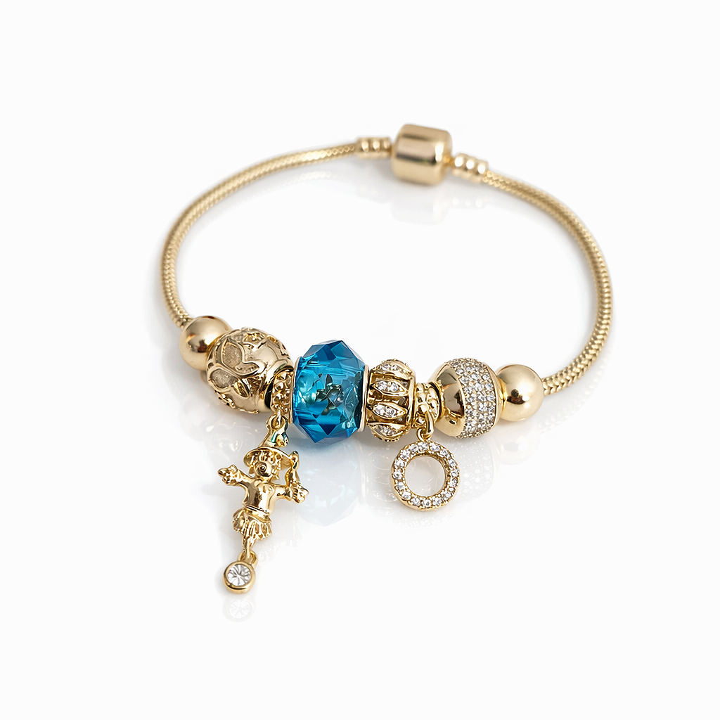 Bransoletka modułowa charms złota z cyrkoniami