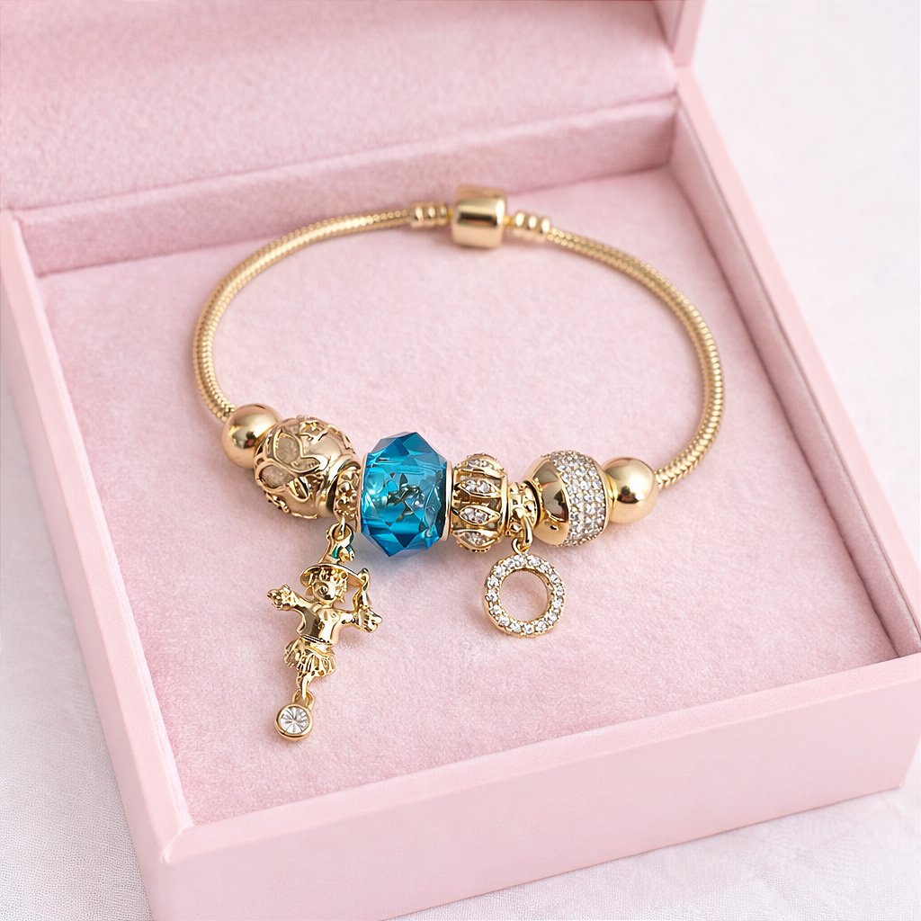 Bransoletka modułowa charms złota zawieszki cyrkonie
