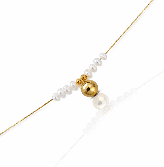 Bransoletka na kostę perły kulka POZŁACANA STAL