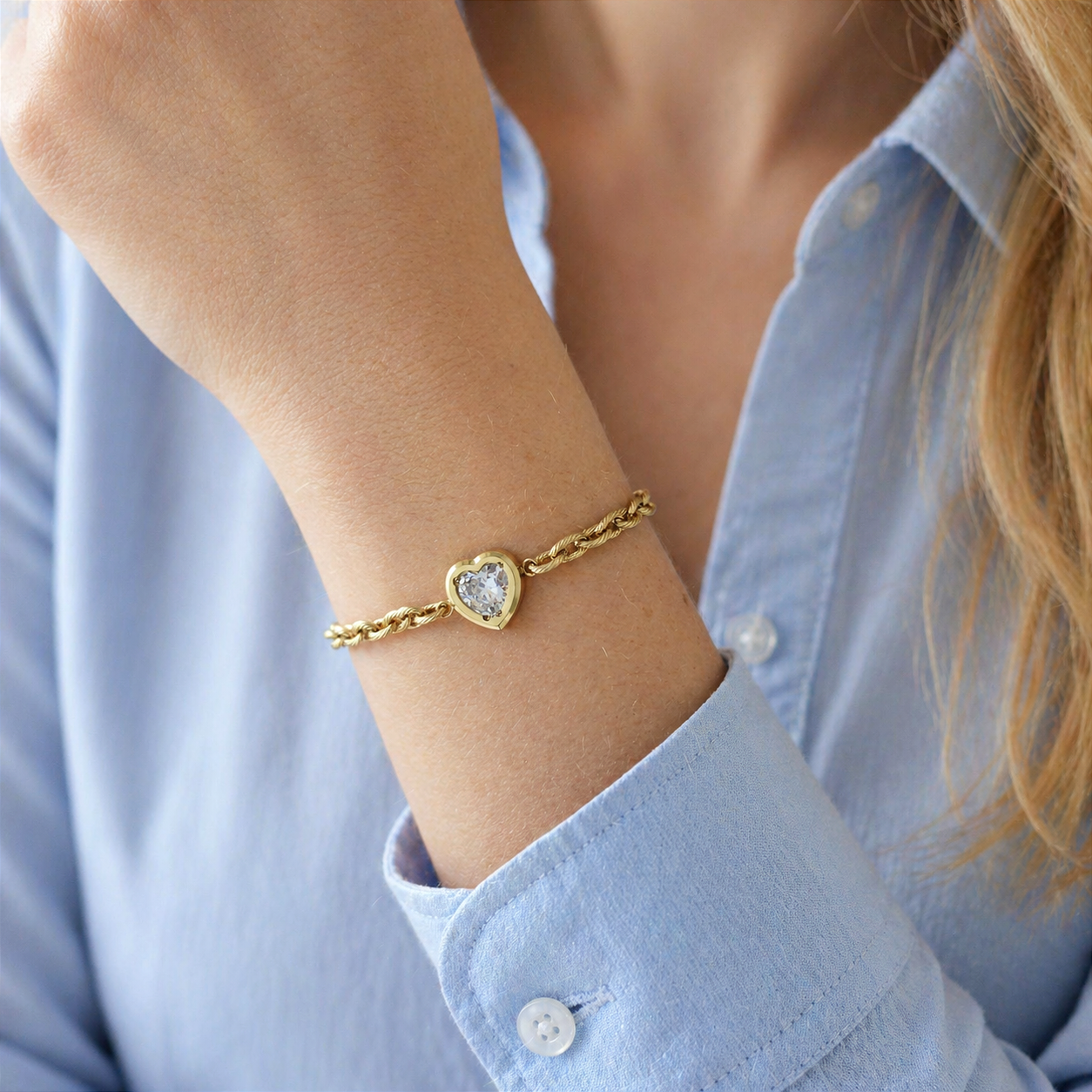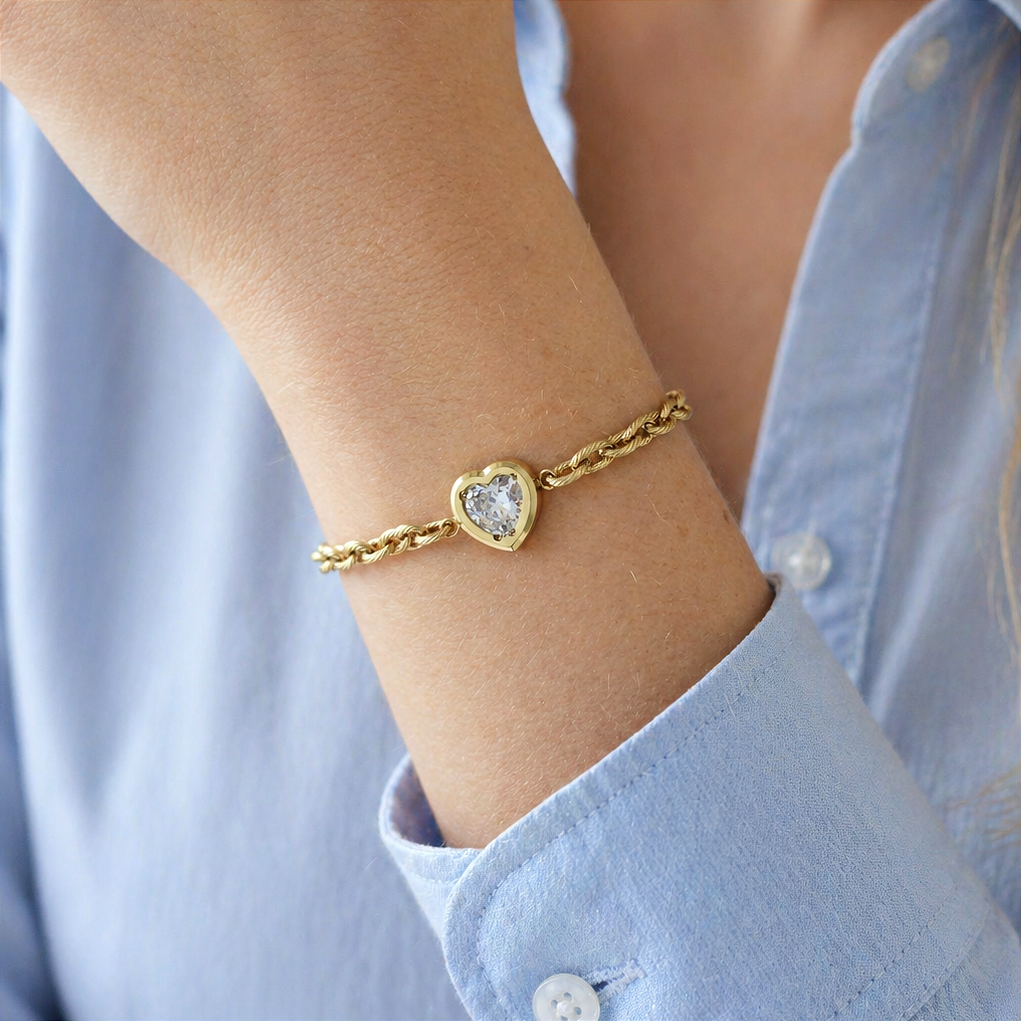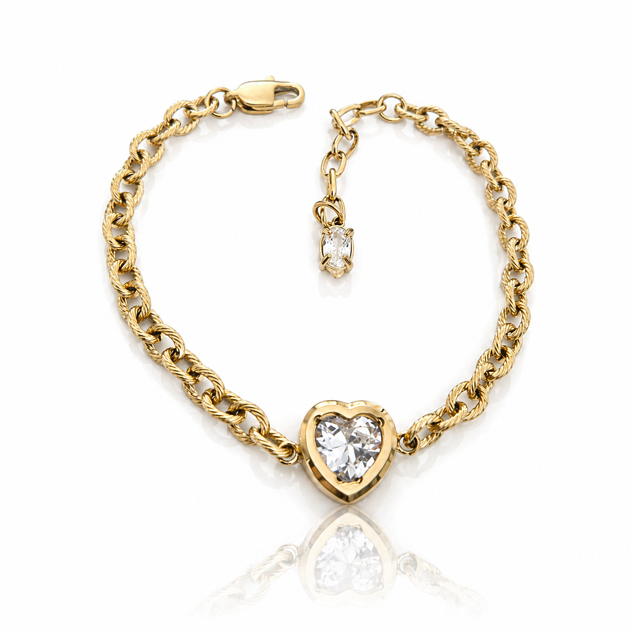 Bransoletka pancerka serce kryształ POZŁACANA STAL