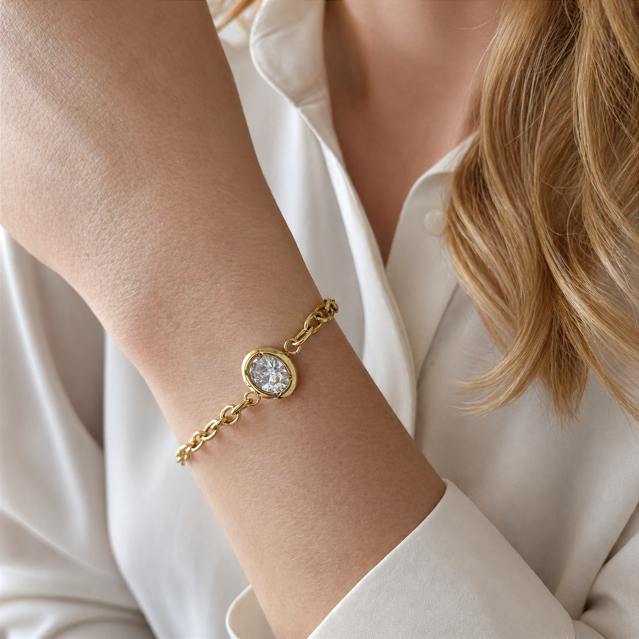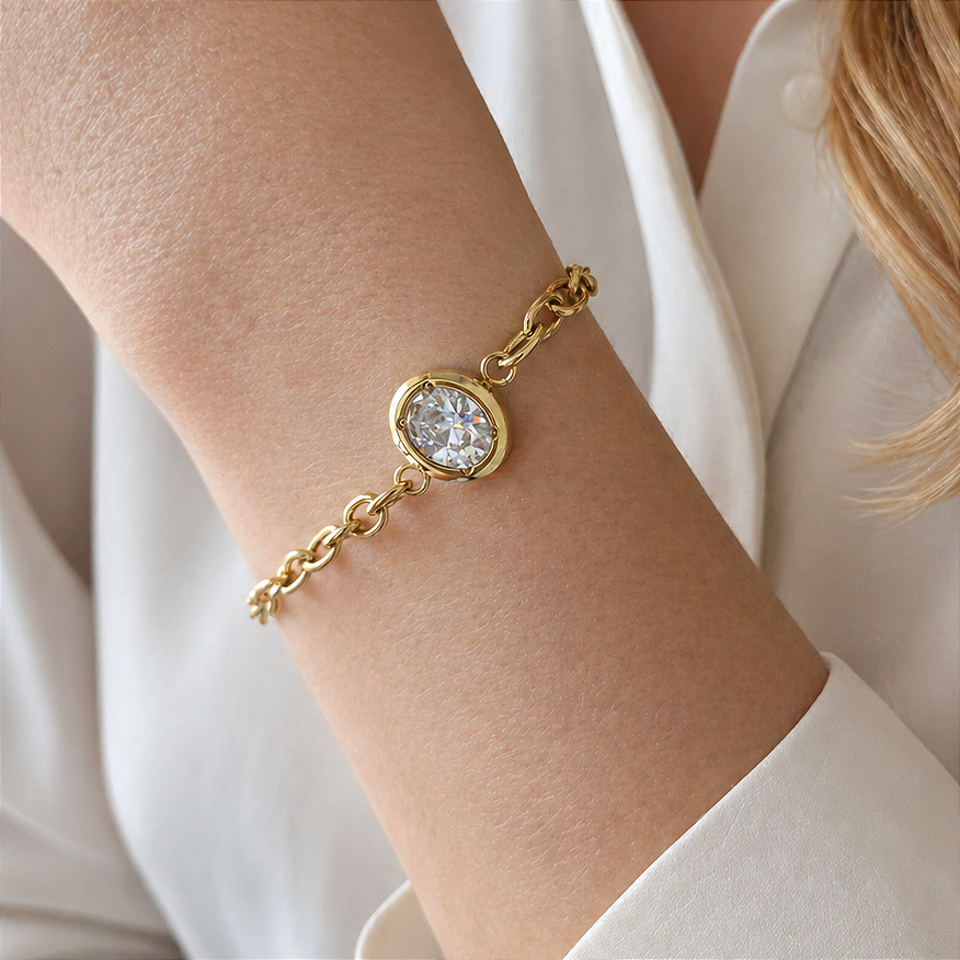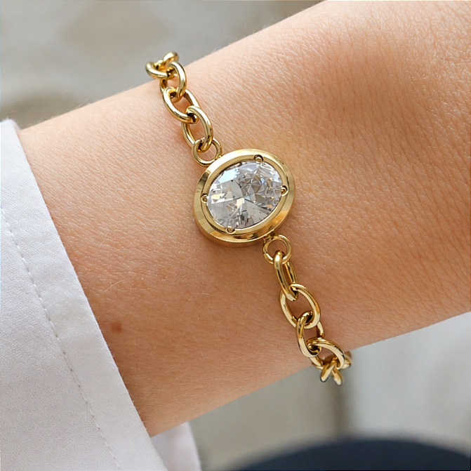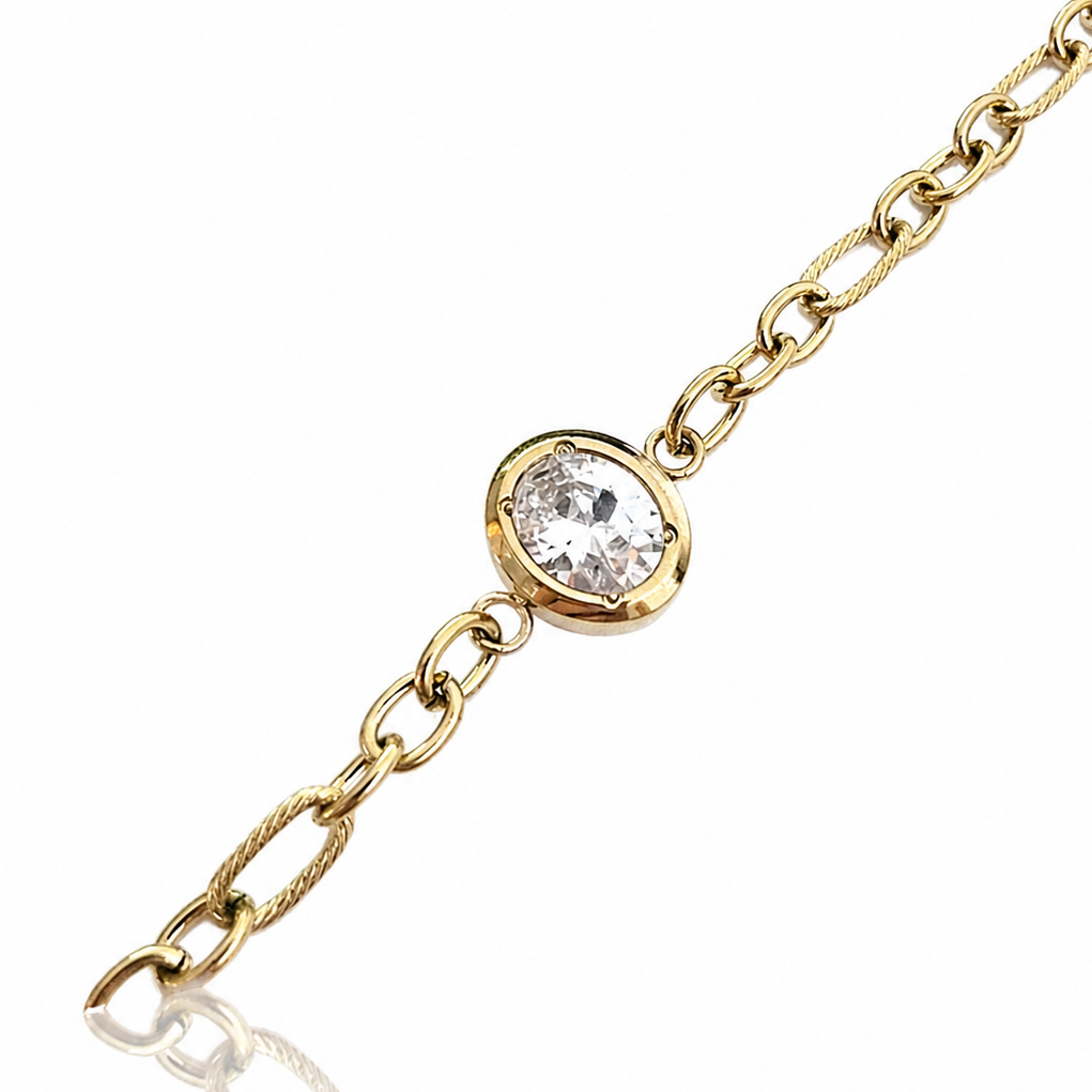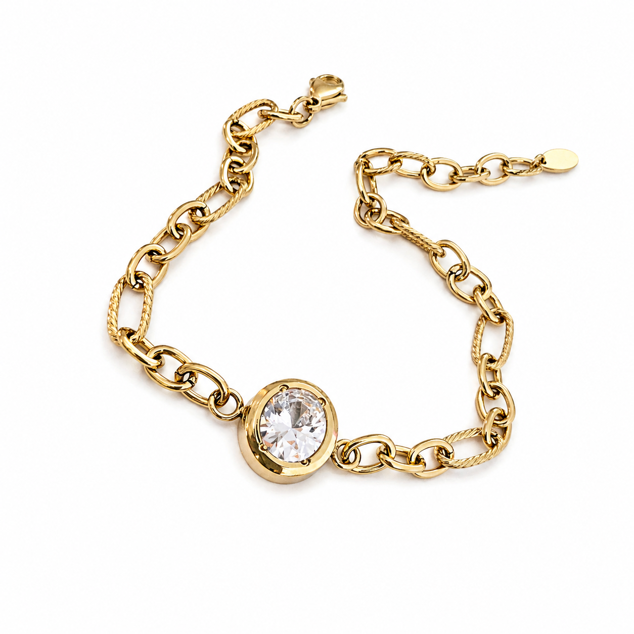 Bransoletka pancerka z kryształem POZŁACANA STAL