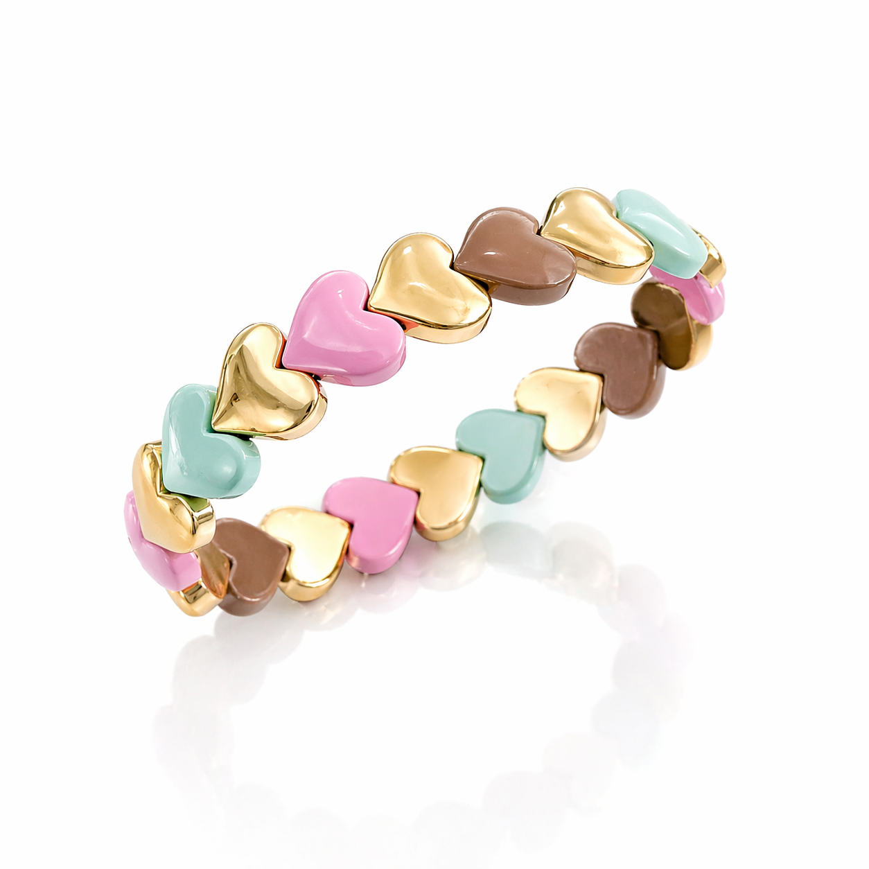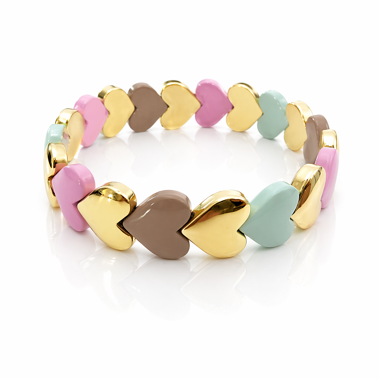 Bransoletka serca turkus, fiolet beż emalia pozłacana elastyczna