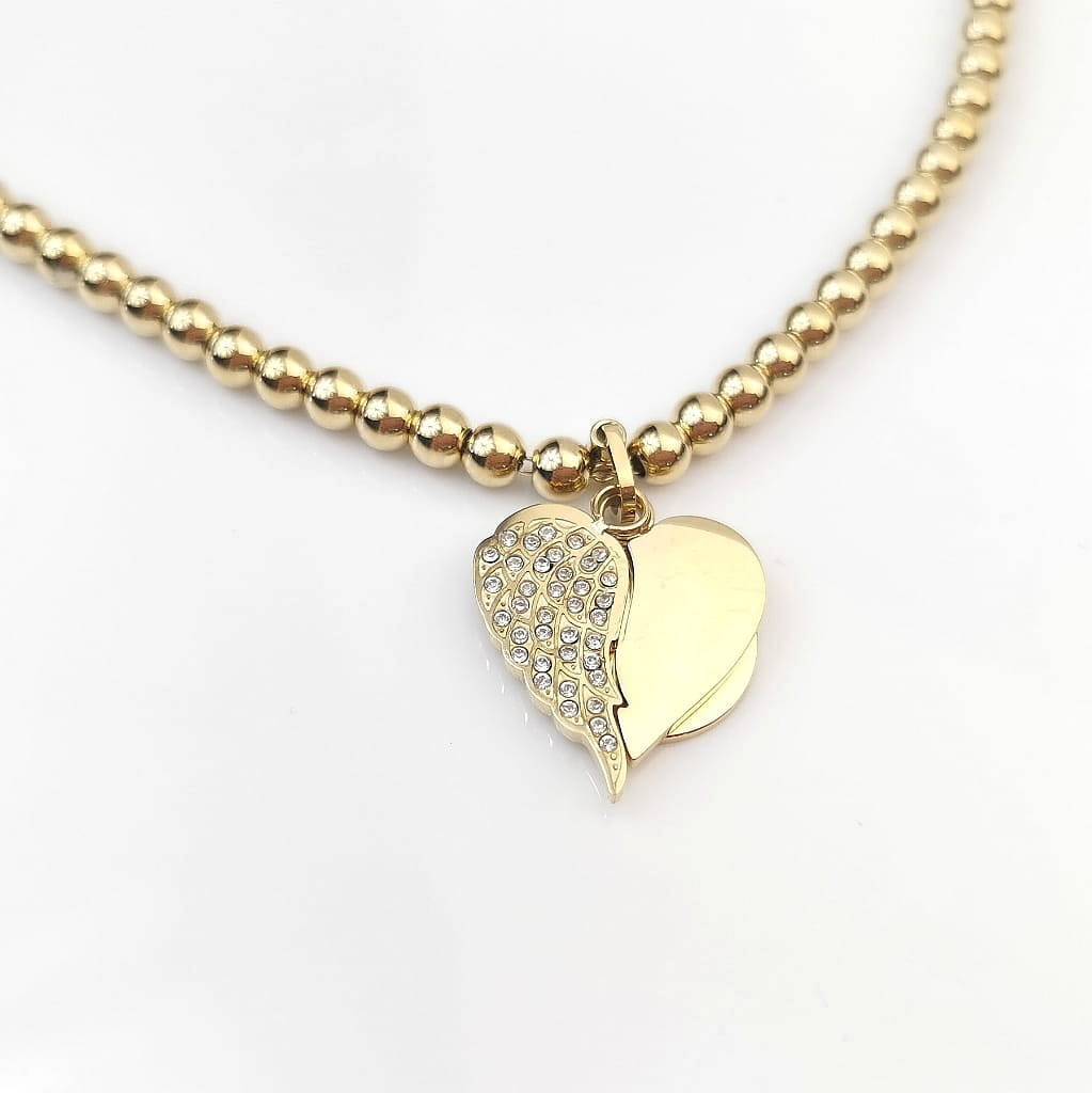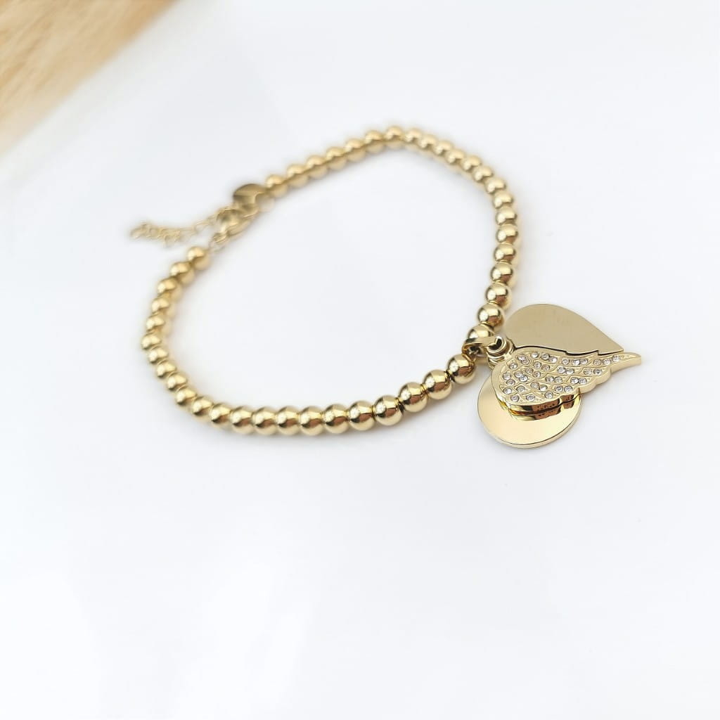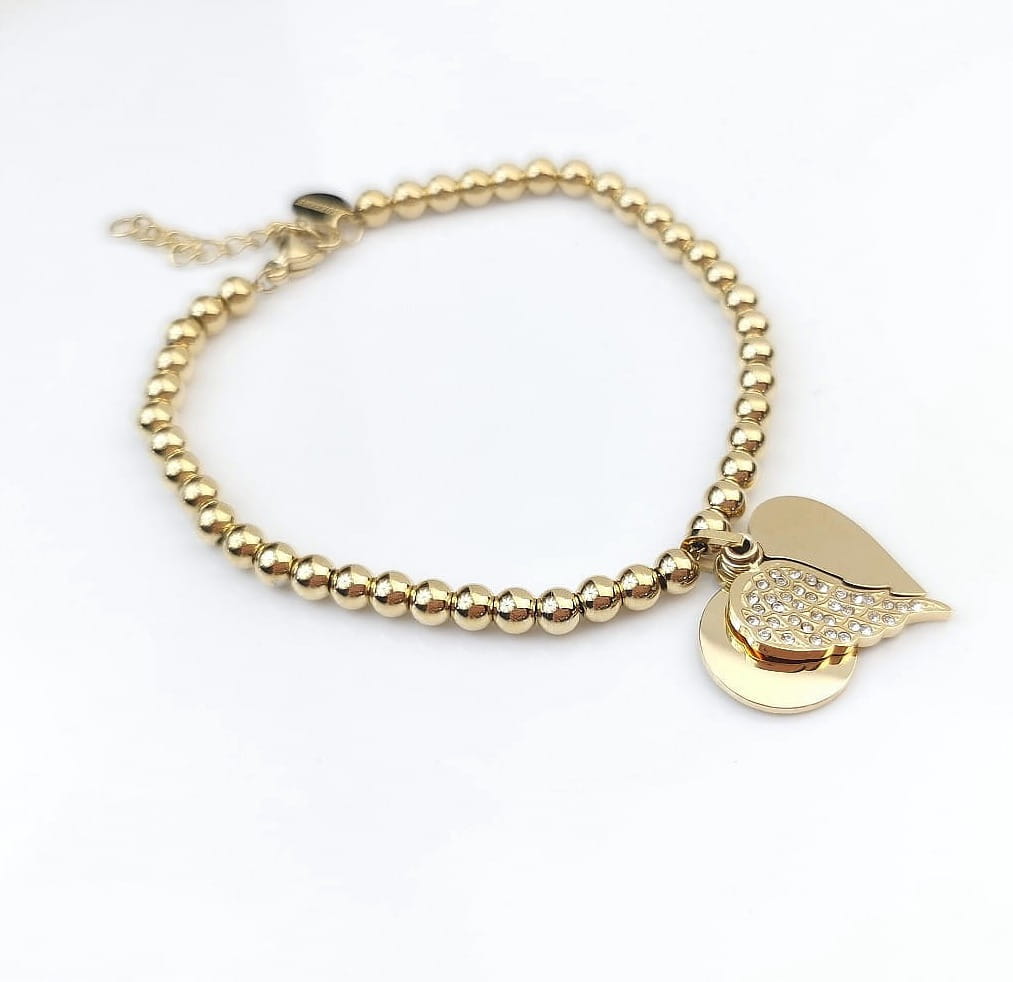 Bransoletka serce skrzydła kulki STAL CHIRURGICZNA złota Premium