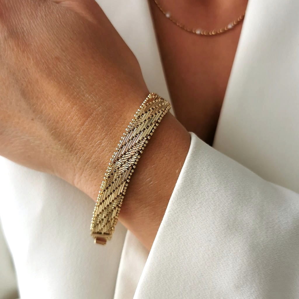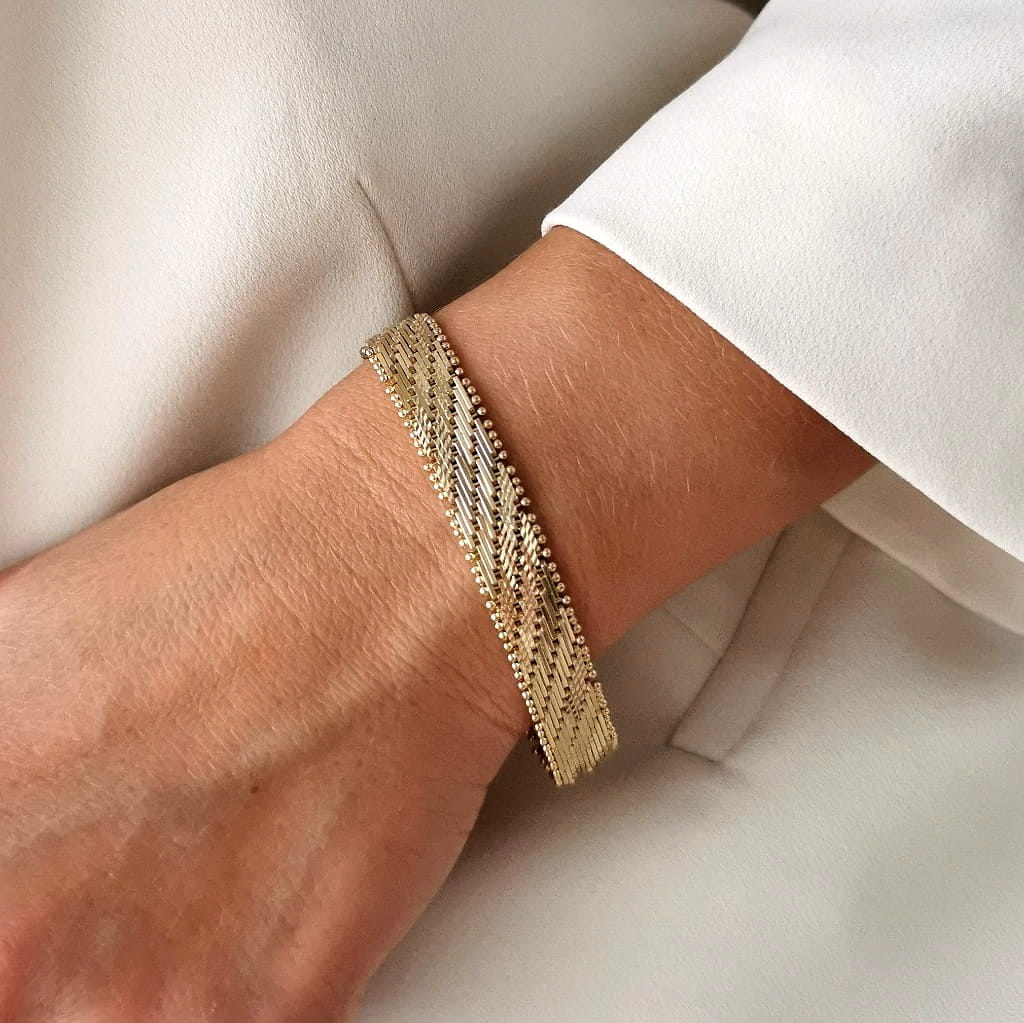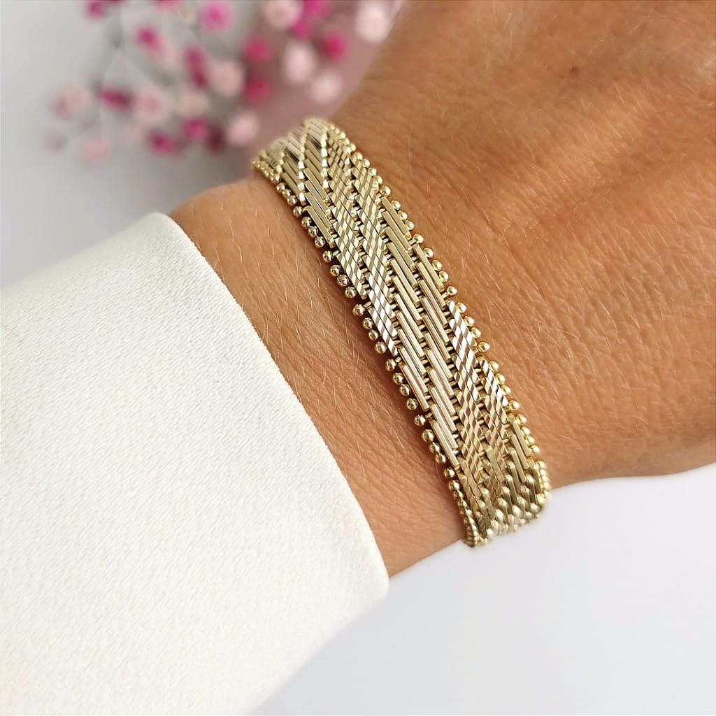Unikatowy model bransoletki ze stali szlachetnej. Przepiępkny model, który świetnie wpisze się do każdej stylizacji. Naturalny kolor złota 14k sprawia, że bransoletka prezentuje się jak od jubilera! Must Have!