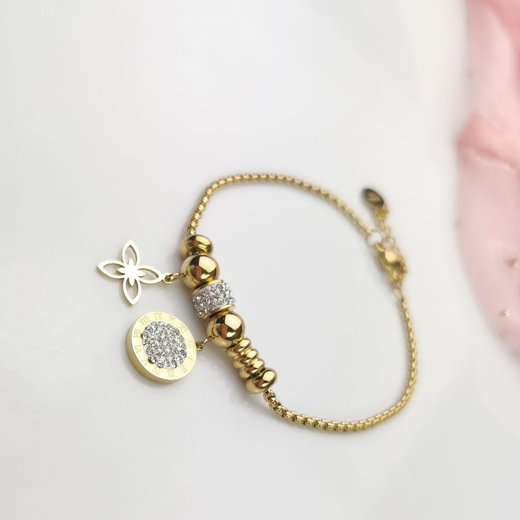 Bransoletka ze STALI CHIRURGICZNEJ modułowa koniczyna cyrkonie kolor złoty