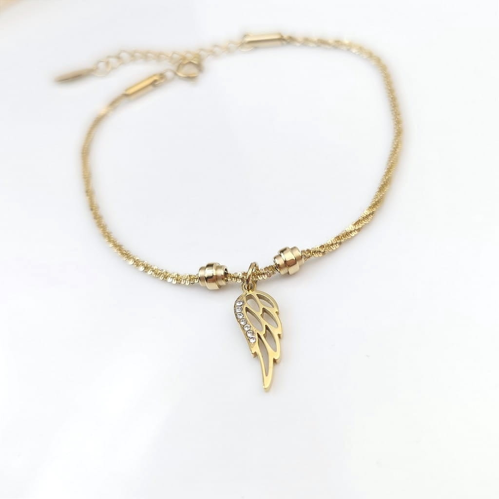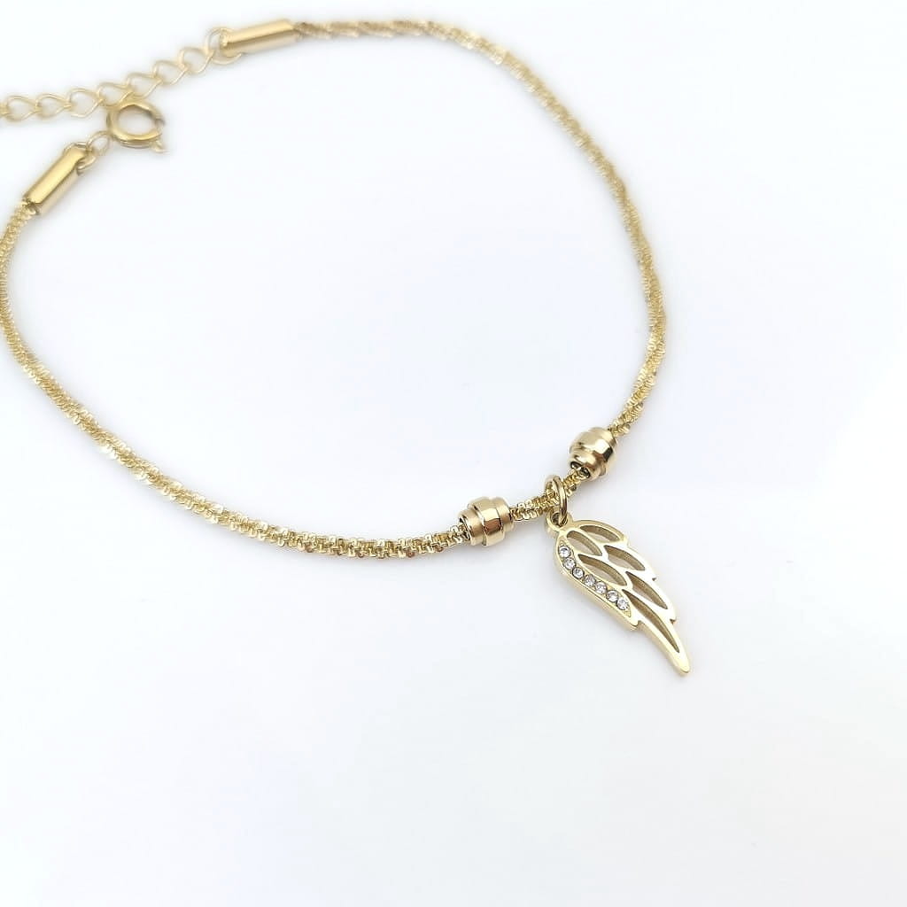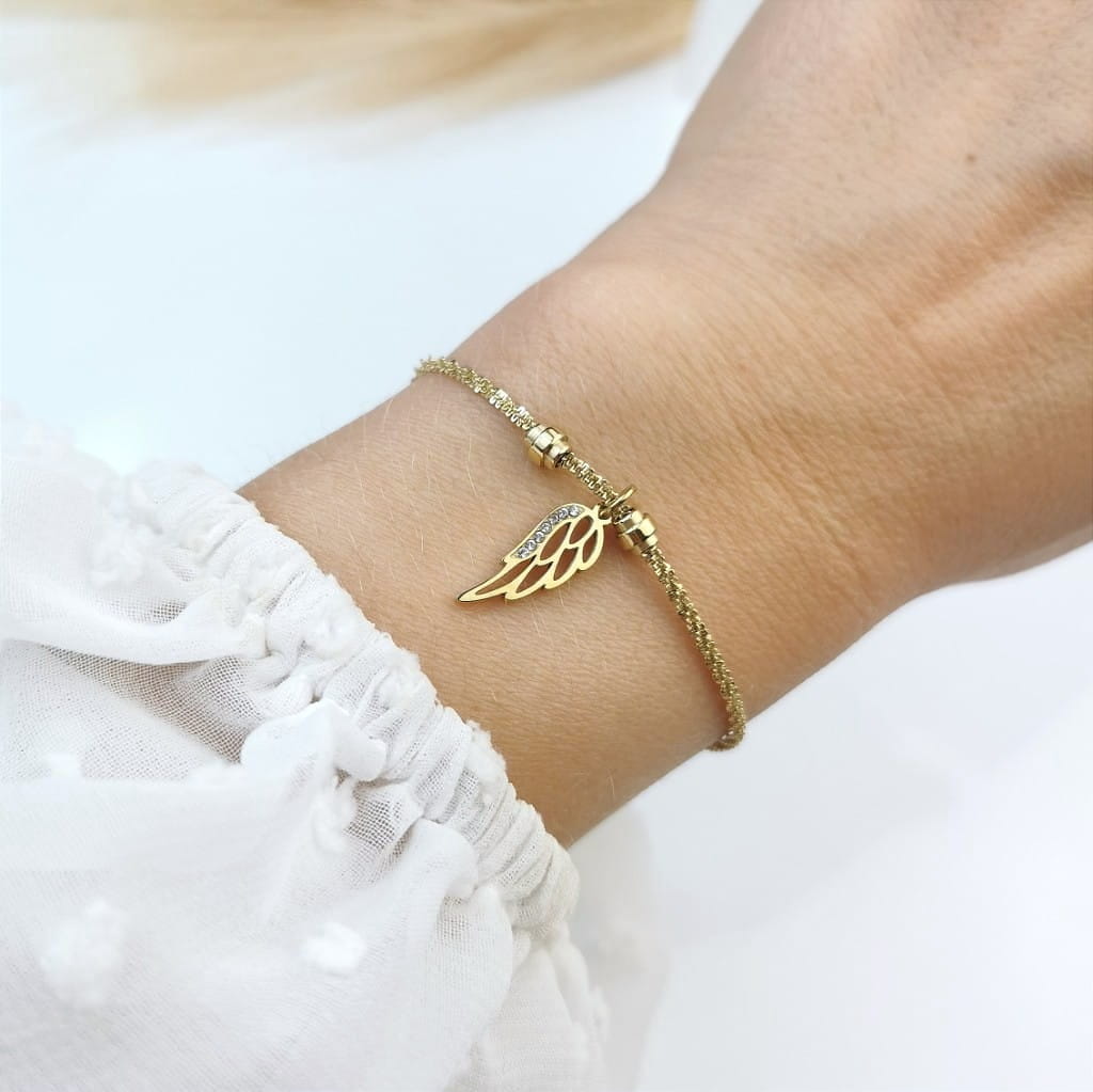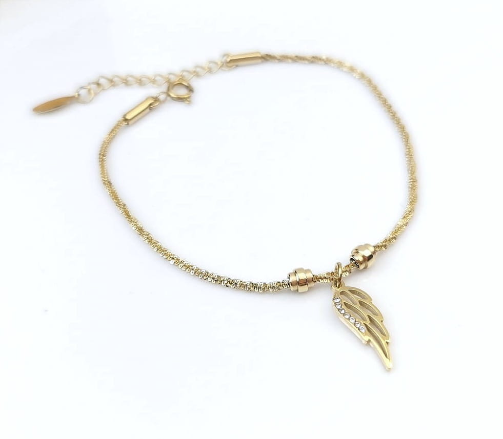 Bransoletka ze STALI CHIRURGICZNEJ skrzydło kryształki złota Blueberry
