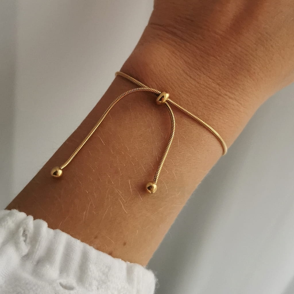 Klasyczna bransoletka z najnowszej kolekcji SOHO Biżuteria, wykonana z wysokiej jakości stali chirurgicznej, w kolorze złota. Klasyczna bransoletka ze złotymi kuleczkami, na łańcuszku typu "żmijka". Będzie niepowtarzalnym dodatkiem w Twojej kolekcji biżuterii. Doda uroku każdej Twojej stylizacji. Idealna na wiele okazji.