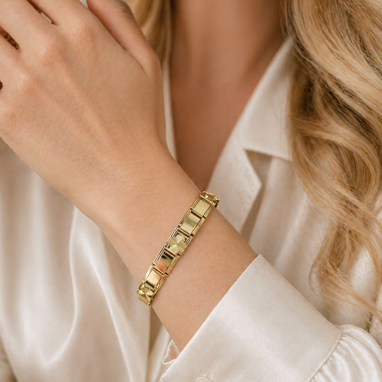 Bransoletka złota modułowa koniczyna serce motyl ze STALI CHIRURGICZNEJ PREMIUM