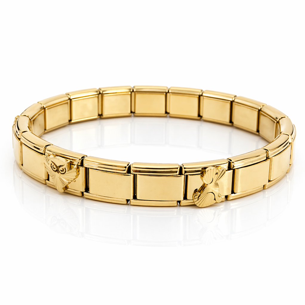 Bransoletka złota modułowa miś jaskółka ze STALI CHIRURGICZNEJ PREMIUM