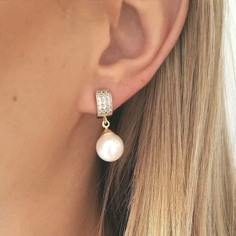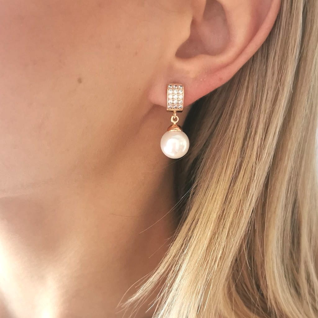Kolczyki POZŁACANE kryształki z perłą rose gold