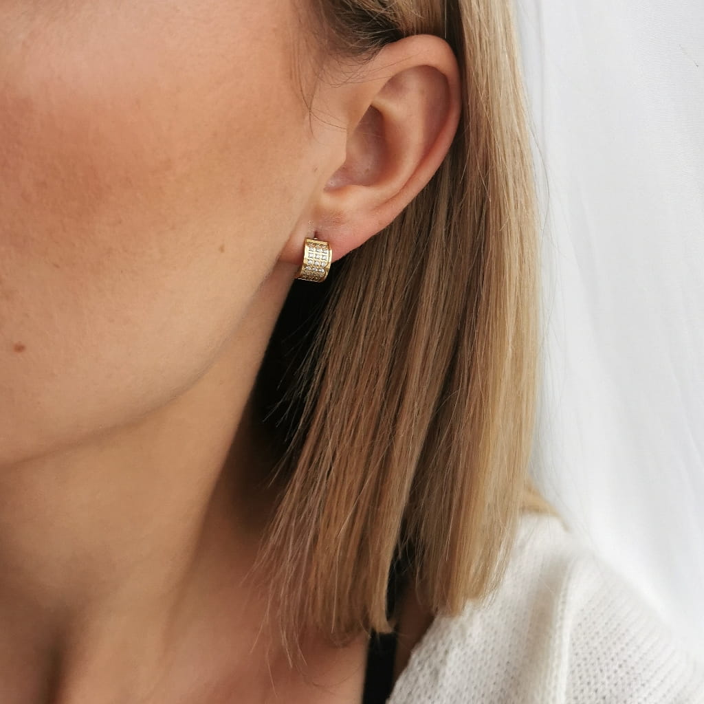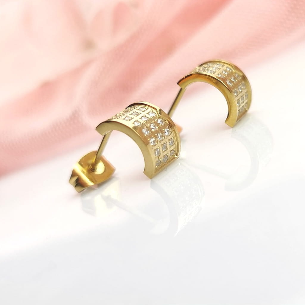 Kolczyki Premium STAL CHIRURGICZNA szersze kryształki kolor złoty