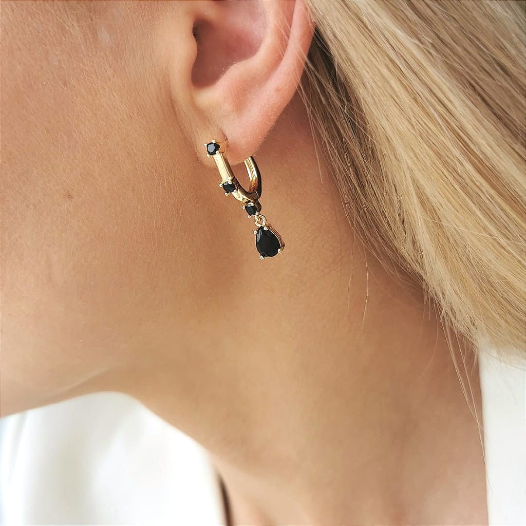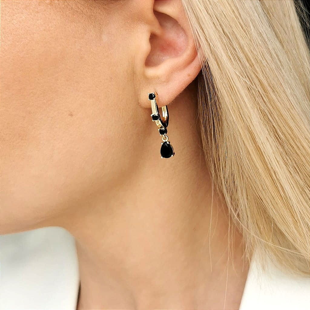 Klasyczne kolczyki kółka z kryształowym czarnymi kryształowymi łezkami. Klasyczne kolczyki to propozycja, która sprawdzi się do każdej stylizacji i doda jej uroku.Długość całkowita: 1,3 cm