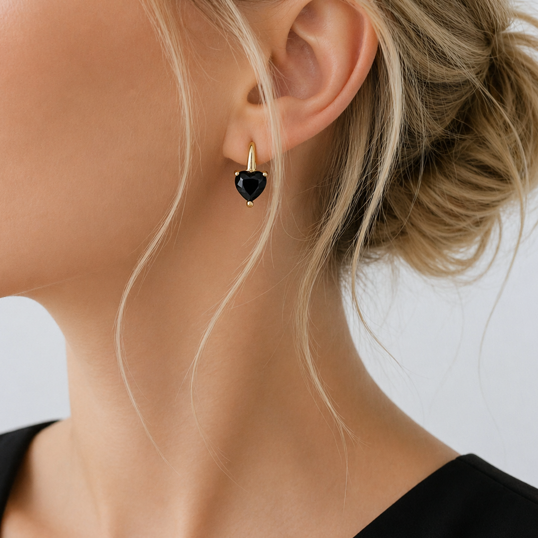 Kolczyki czarne serduszka kryształy POZŁACANE