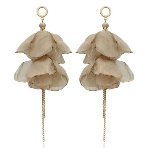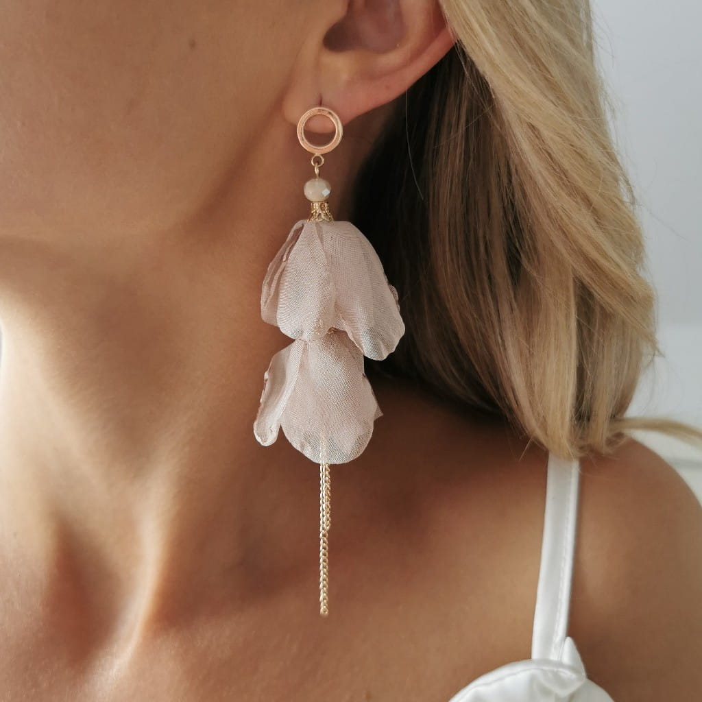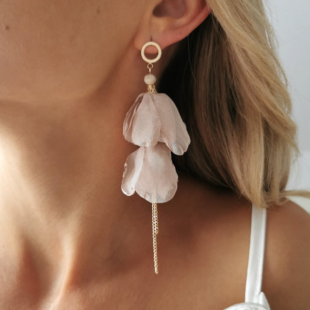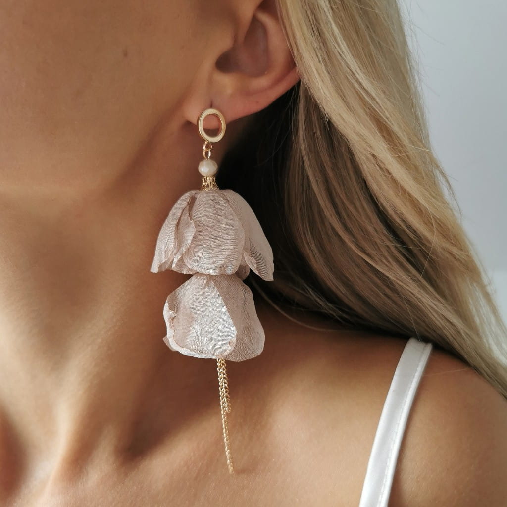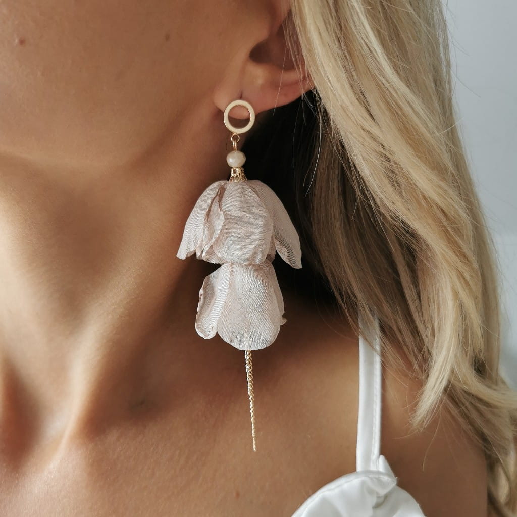 Kolczyki jedwabne KWIATY beżowe