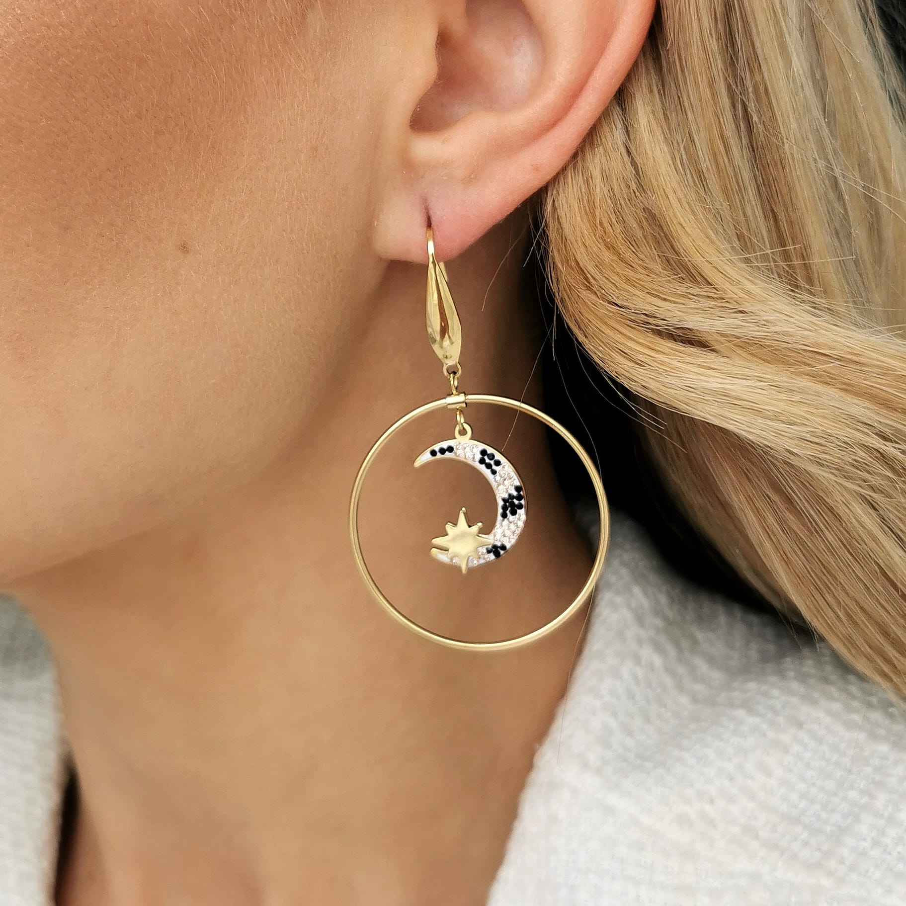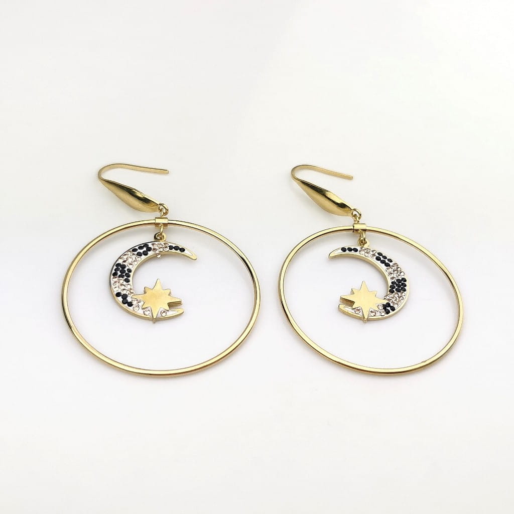 Kolczyki koła księżyc gwiazdka kolorowe kryształ STAL CHIRURGICZNA złote