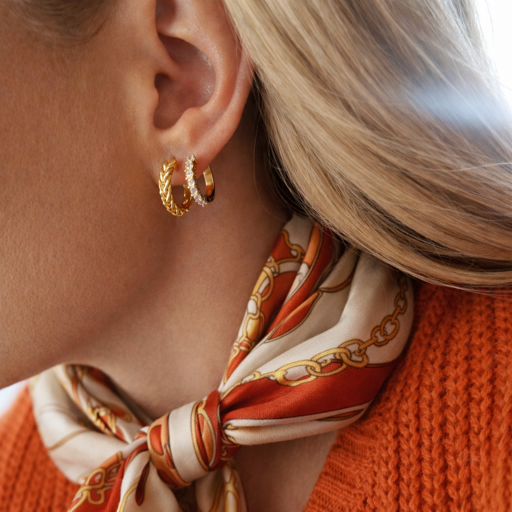 Klasyczne kolczyki kółka z rzędem białych cyrkonii. Klasyczne kolczyki to propozycja, która sprawdzi się do każdej stylizacji i doda jej uroku.