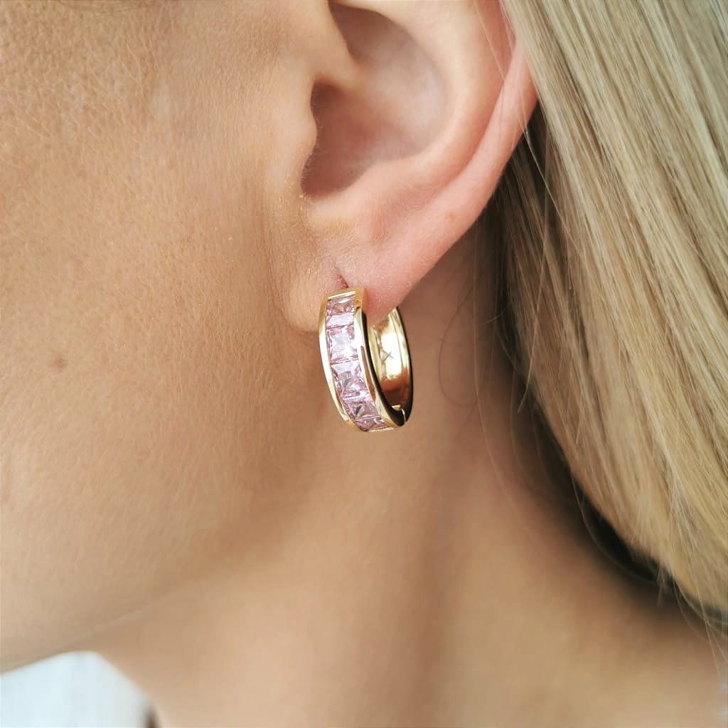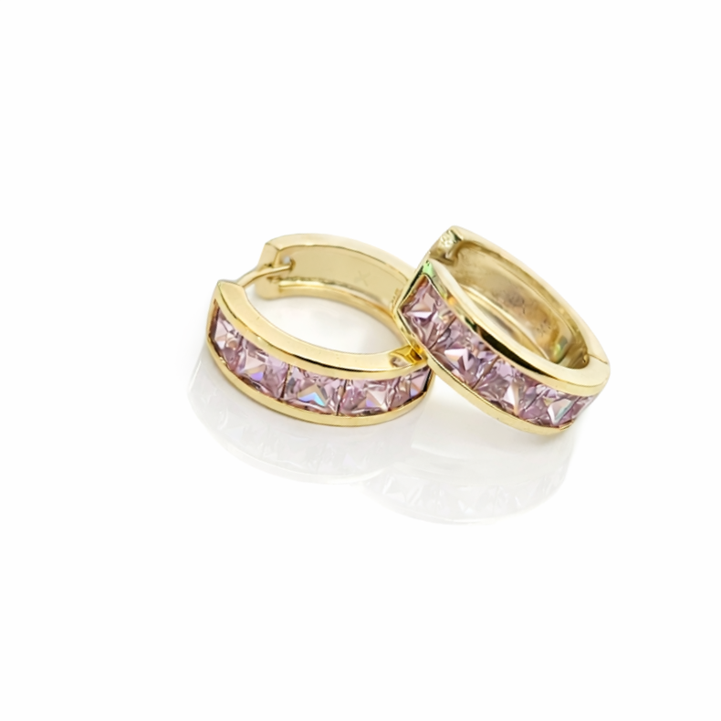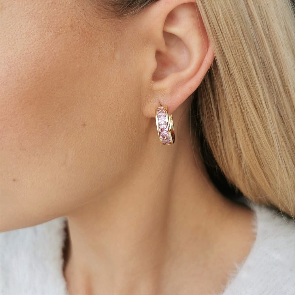 Kolczyki koła z różowymi kryształami POZŁACANA STAL SZLACHETNA