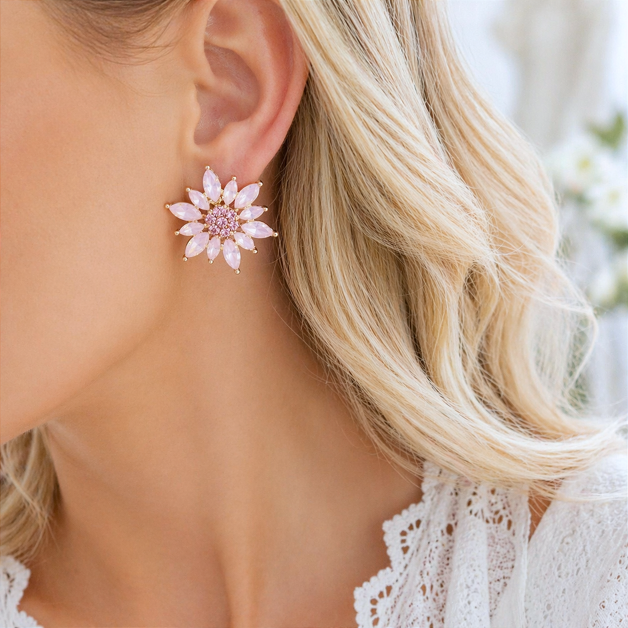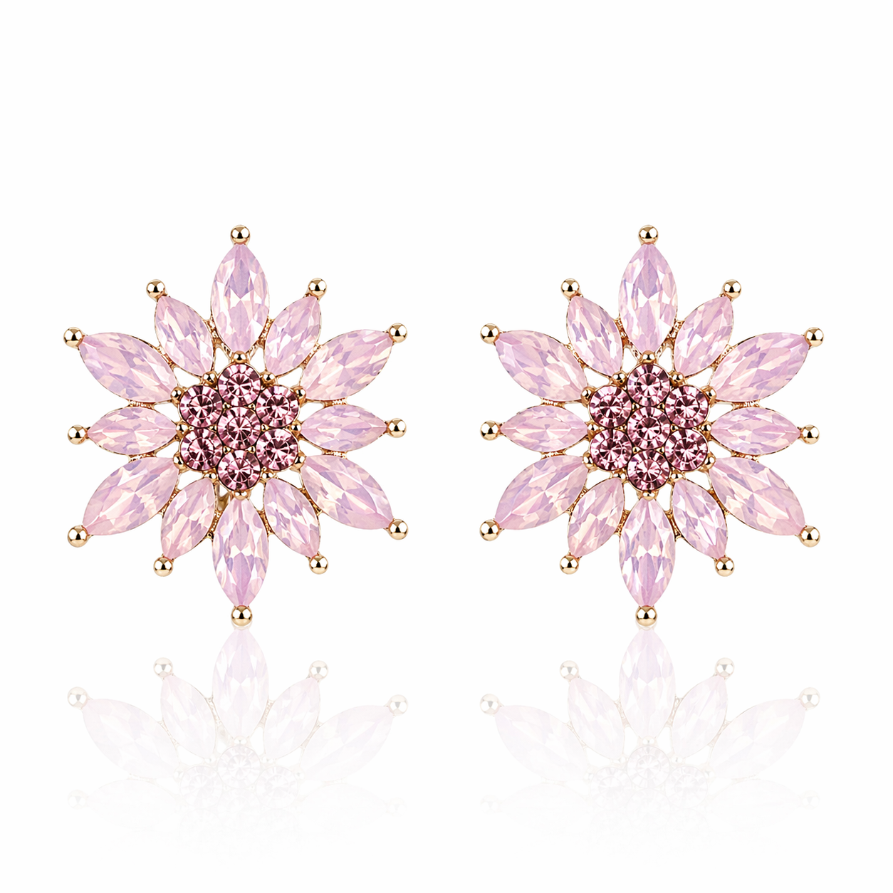 Kolczyki kryształowe kwiaty różowe POZŁACANE