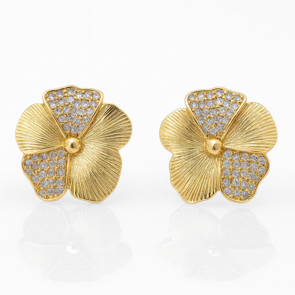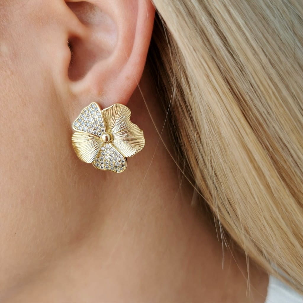 Kolczyki kwiaty z cyrkoniami POZŁACANA STAL