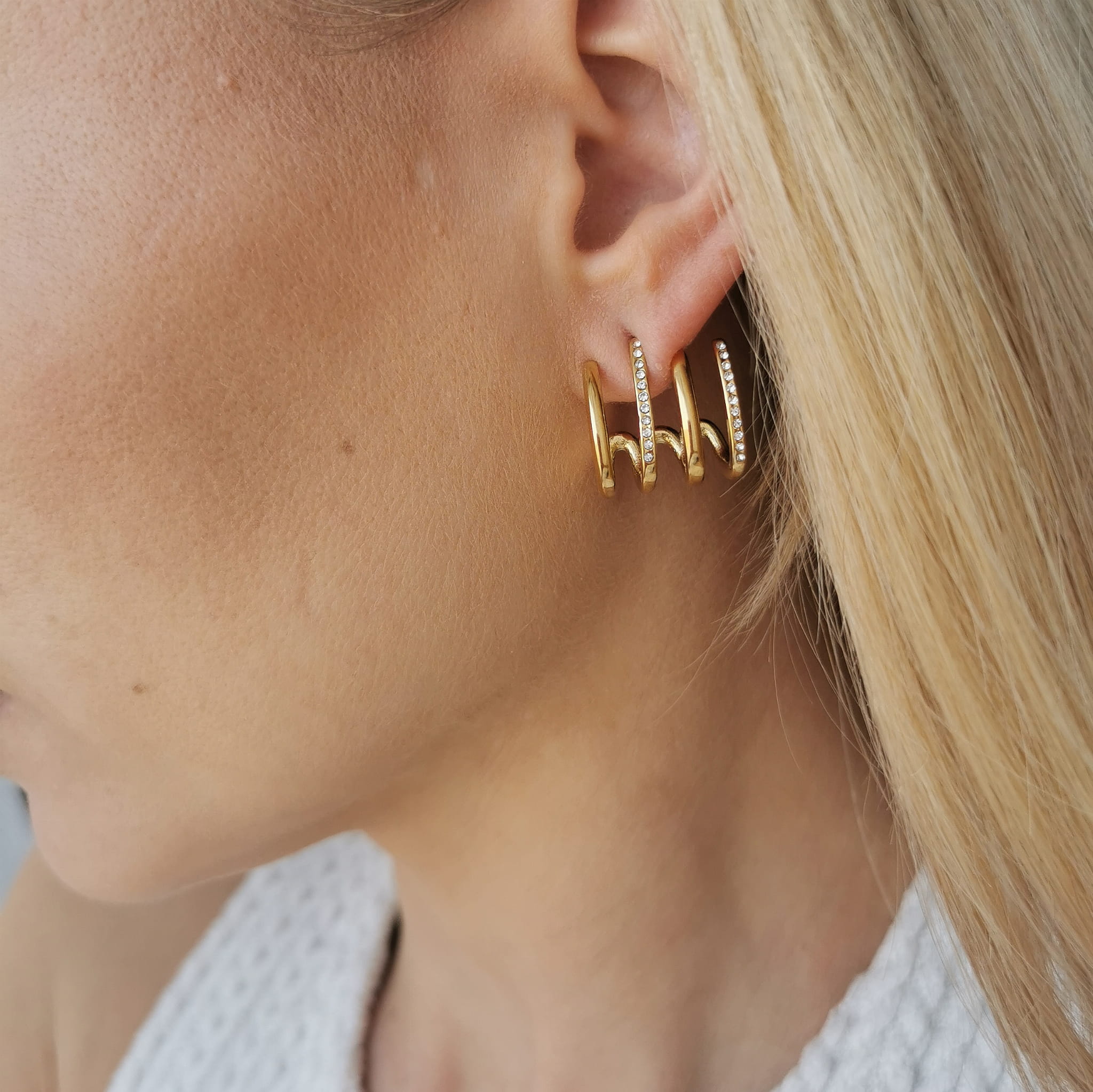 Unikatowy model kolczyków, z kryształkami. Pięknie prezentują się na uchu i tworzą niesamowity look.