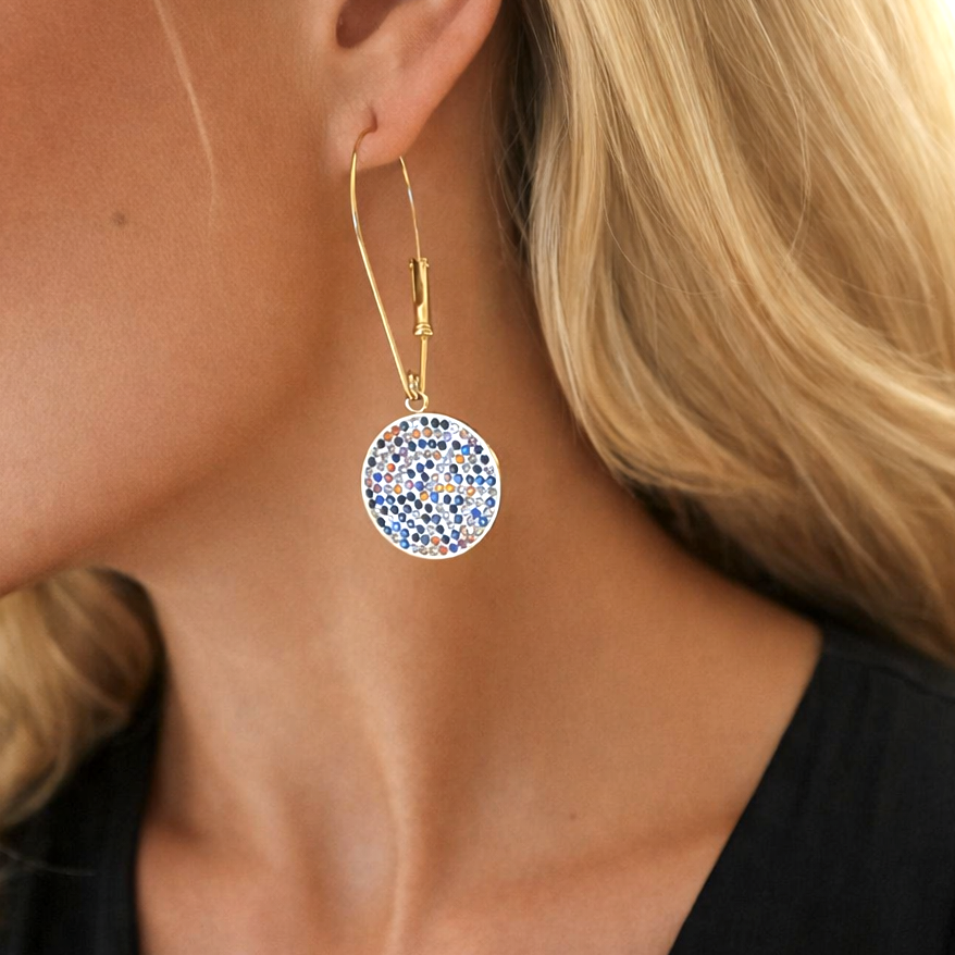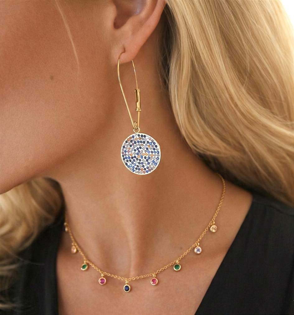 Kolczyki z okrągłą zawieszką kolorowe cyrkonie POZŁACANA STAL Premium