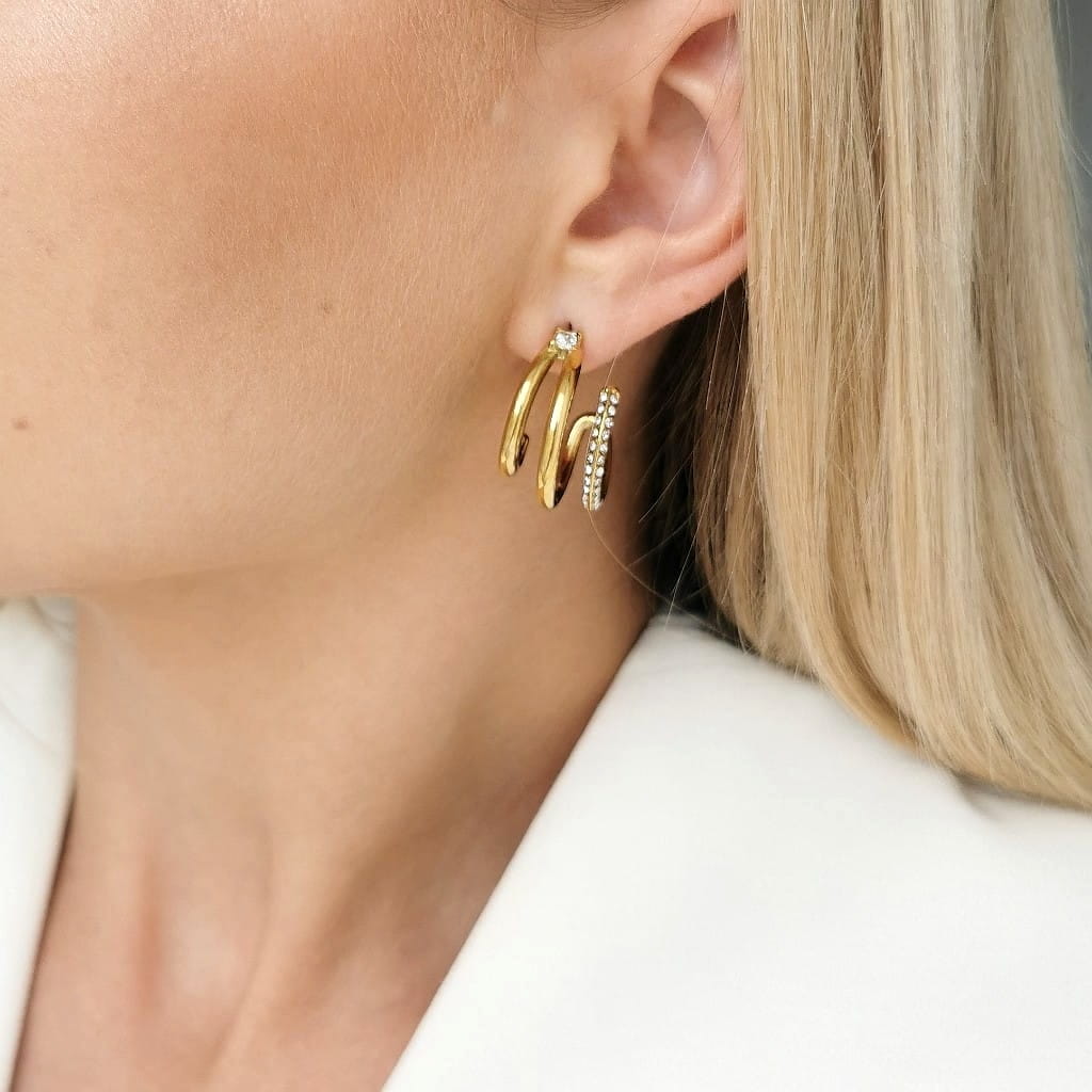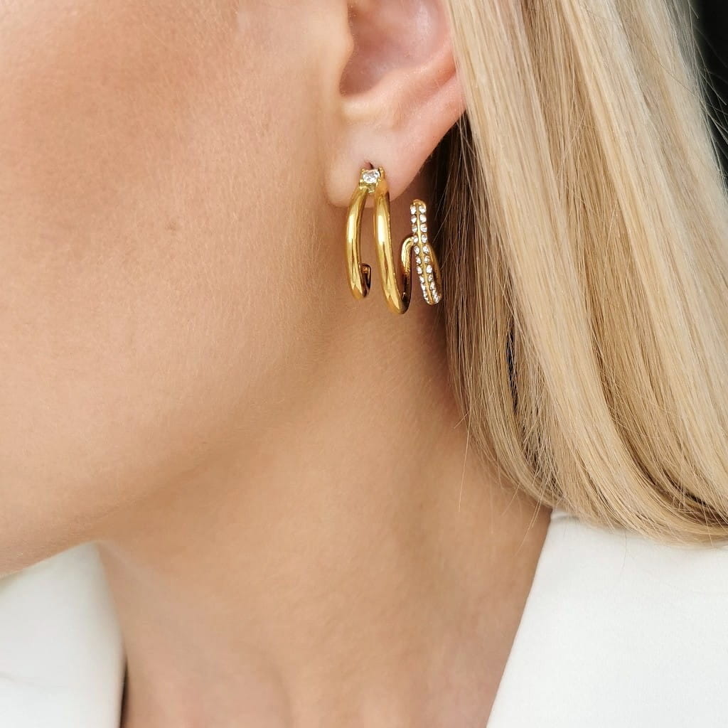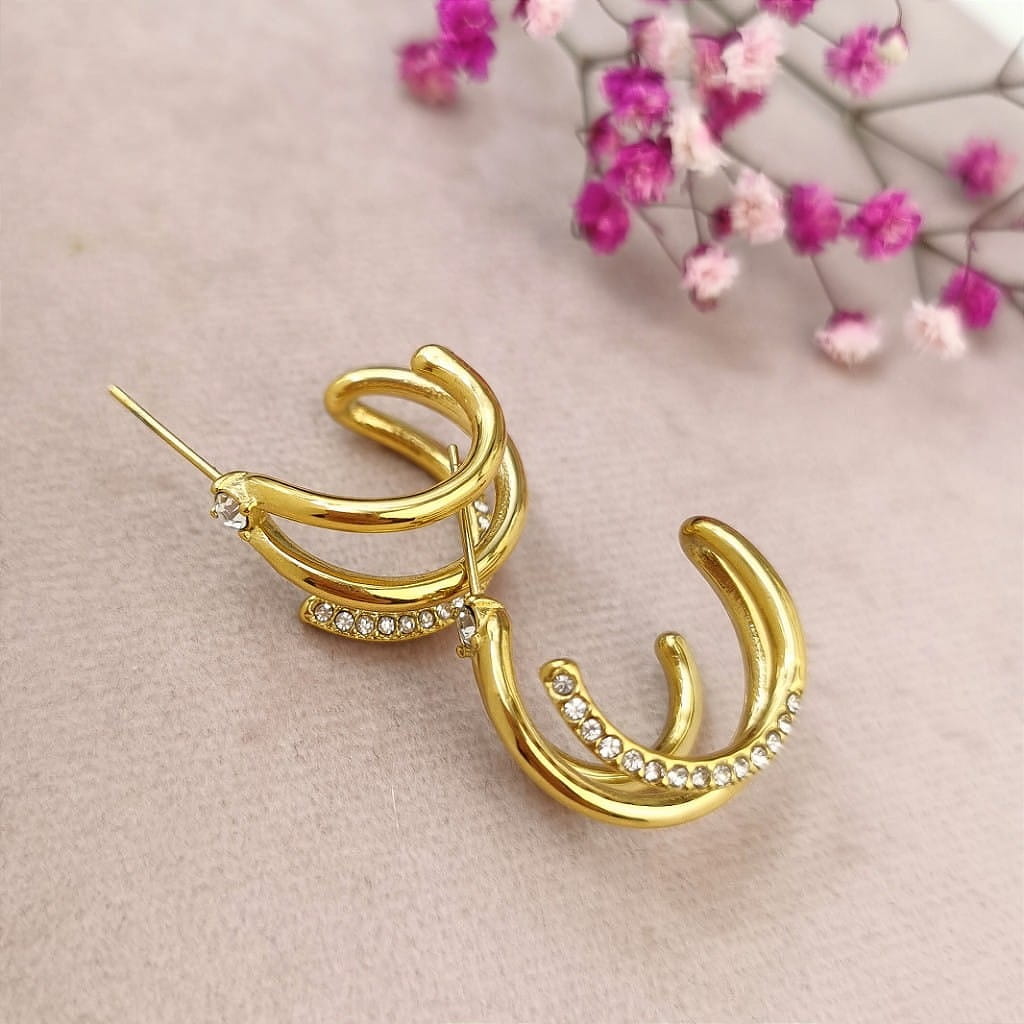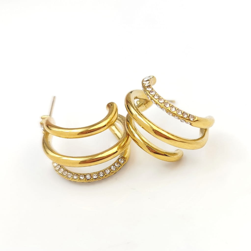 Kolczyki zawijane z kryształami ze STALI CHIRURGICZNEJ kolor złoty