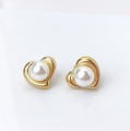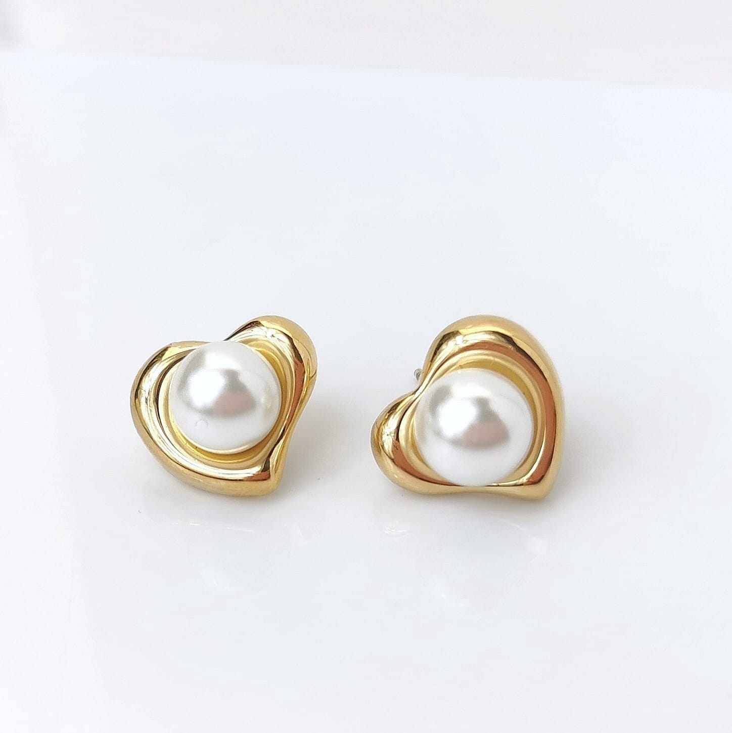 Kolczyki ze STALI CHIRURGICZNEJ klasyczne serca perła kolor złoty
