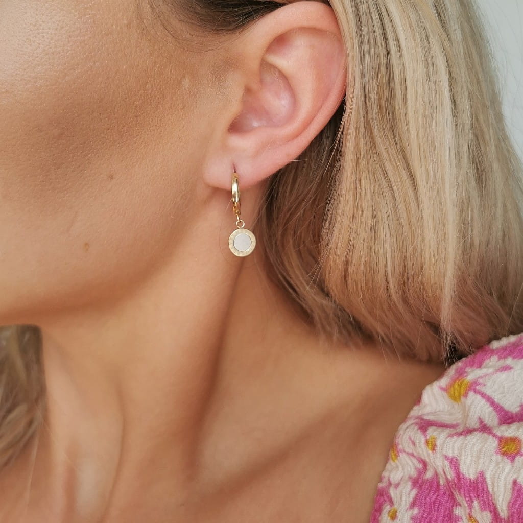 Stylowe kolczyki z najnowszej kolekcji SOHO Biżuteria, wykonane z wysokiej jakości stali chirurgicznej 316l w kolorze złotym. Kolczyki stal szlachetna klasyczne z zawieszką z wypełnieniem z masy perłowej. Model, który sprawdzi się do każdej stylizacji, a z pewnością jako prezent dla ukochanej osoby. Jakość Premium.