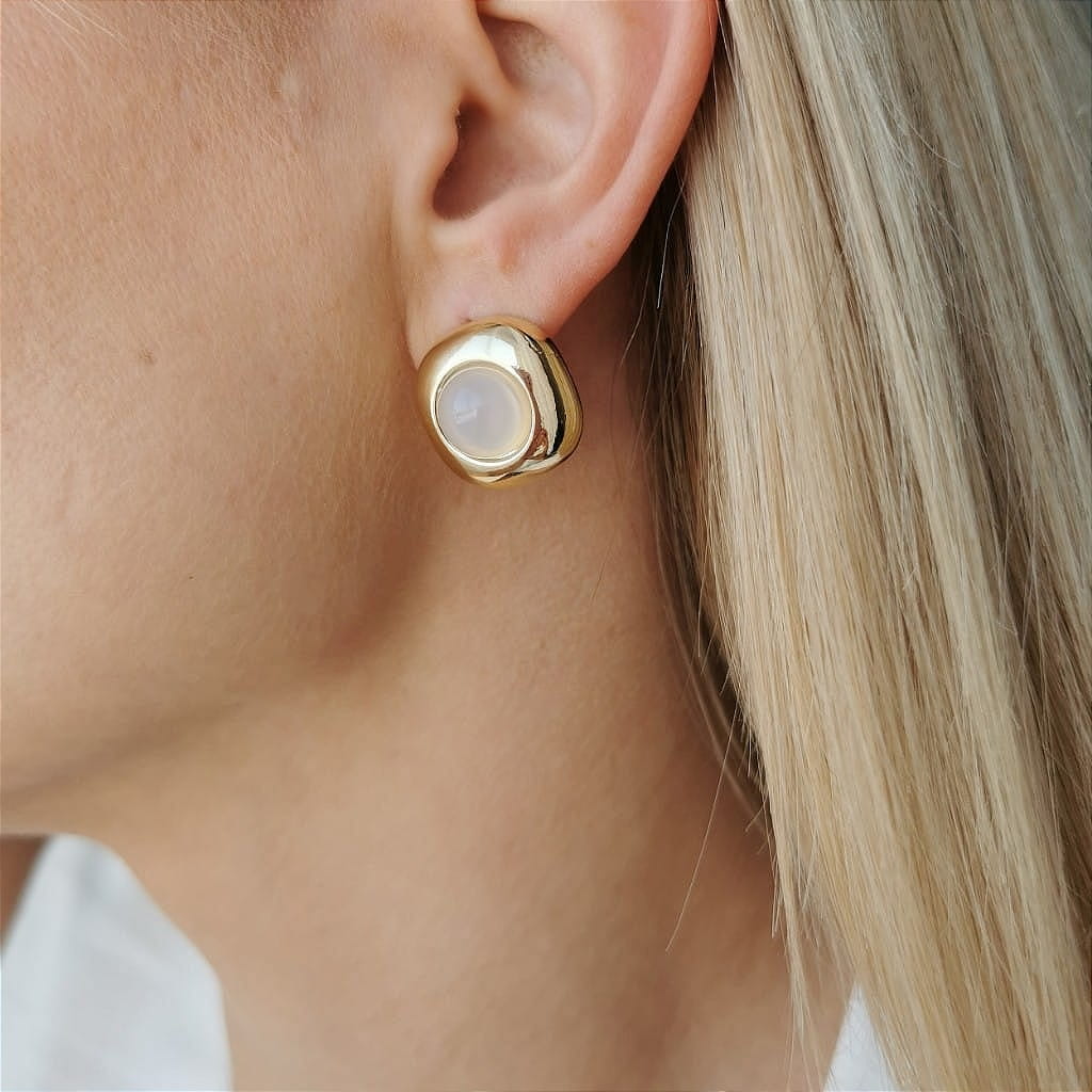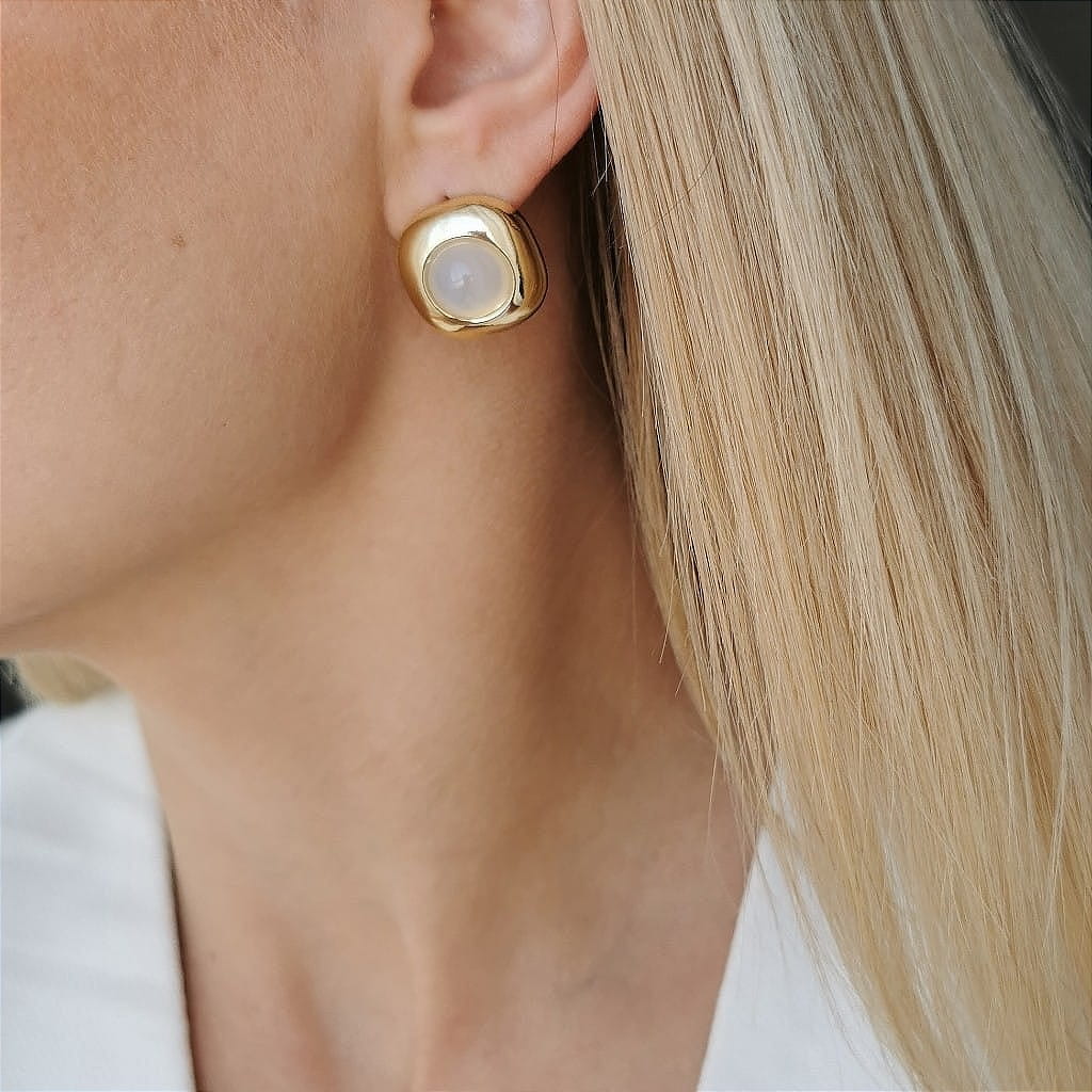 Kolczyki złote kwadraty z perłowym środkiem POZŁACANA STAL